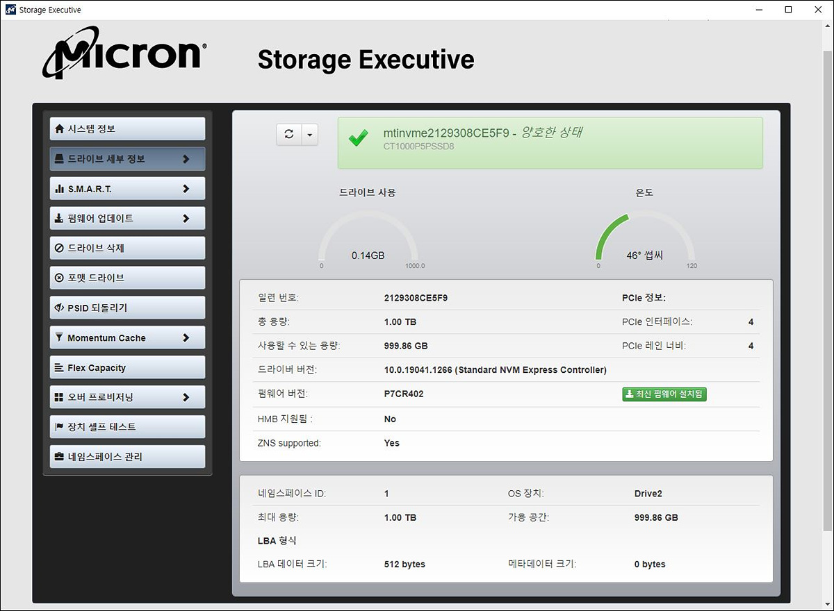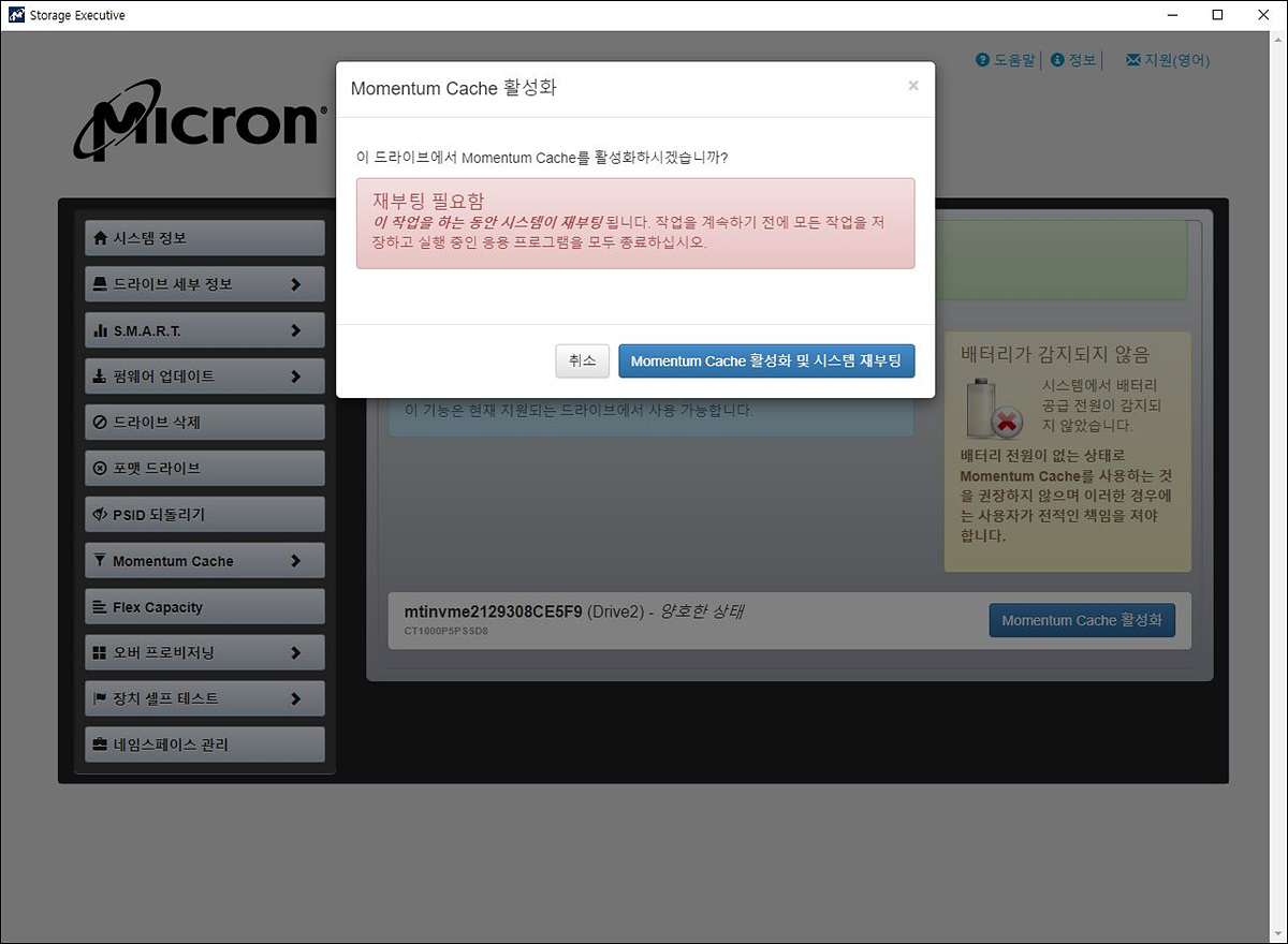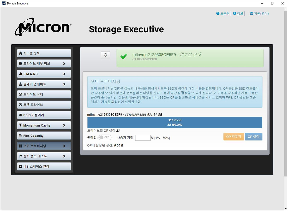 마이크론 SSD의 확인과 관리를 할 수 있는 Storage Executive입니다.