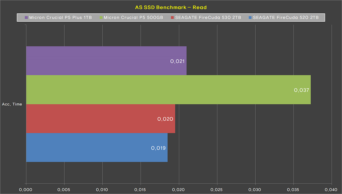 마이크론 제품들이 대체적으로 Access Time에서는 약한 모습이었는데 P5 Plus의 읽기는 기존과 다르게 꽤 좋은 수치를 보여주었습니다.