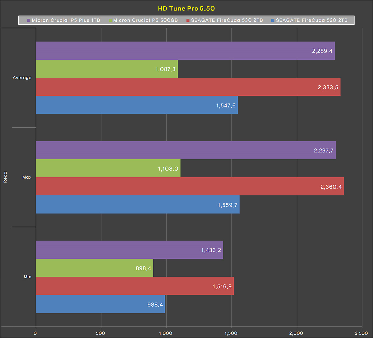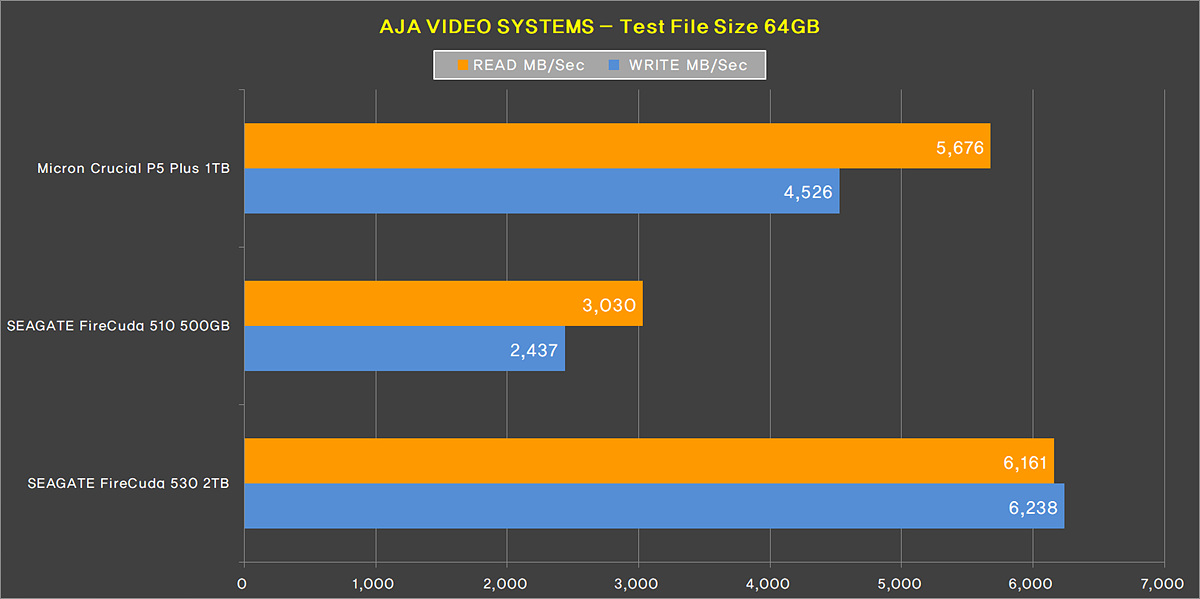 읽기 성능으로는 현재 최고의 스펙을 가지고 있는 Firecuda 530 제품과 거의 비슷한 속도를 보여주고 있으며 이전 제품인 P5보다는 두배가 넘는 수치입니다.