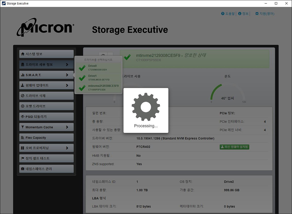 마이크론 SSD의 확인과 관리를 할 수 있는 Storage Executive입니다.
