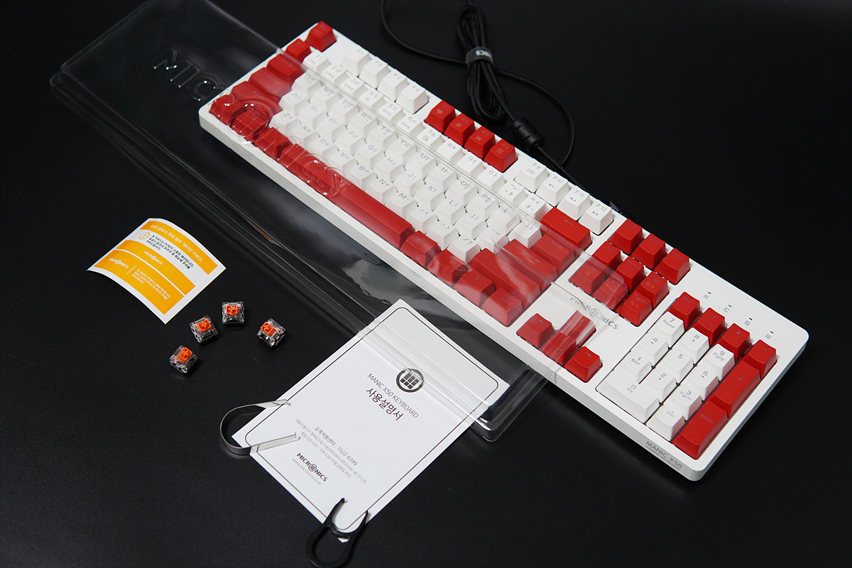 화이트 하우징과 글자(text) 키캡은 모두 화이트로 되어있으며 모디 열만 빨간색으로 포인트를 주고 있습니다. 화이트 계열을 좋아해서 그런지 디자인은 마음에 들었습니다.