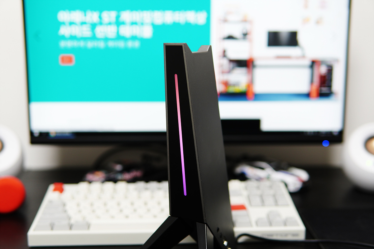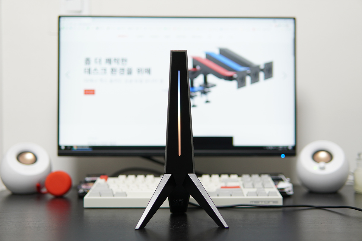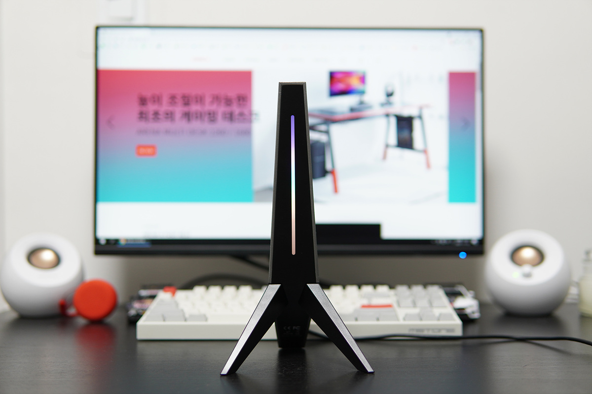 USB 케이블을 연결하면 정면에 RGB LED가 켜집니다.