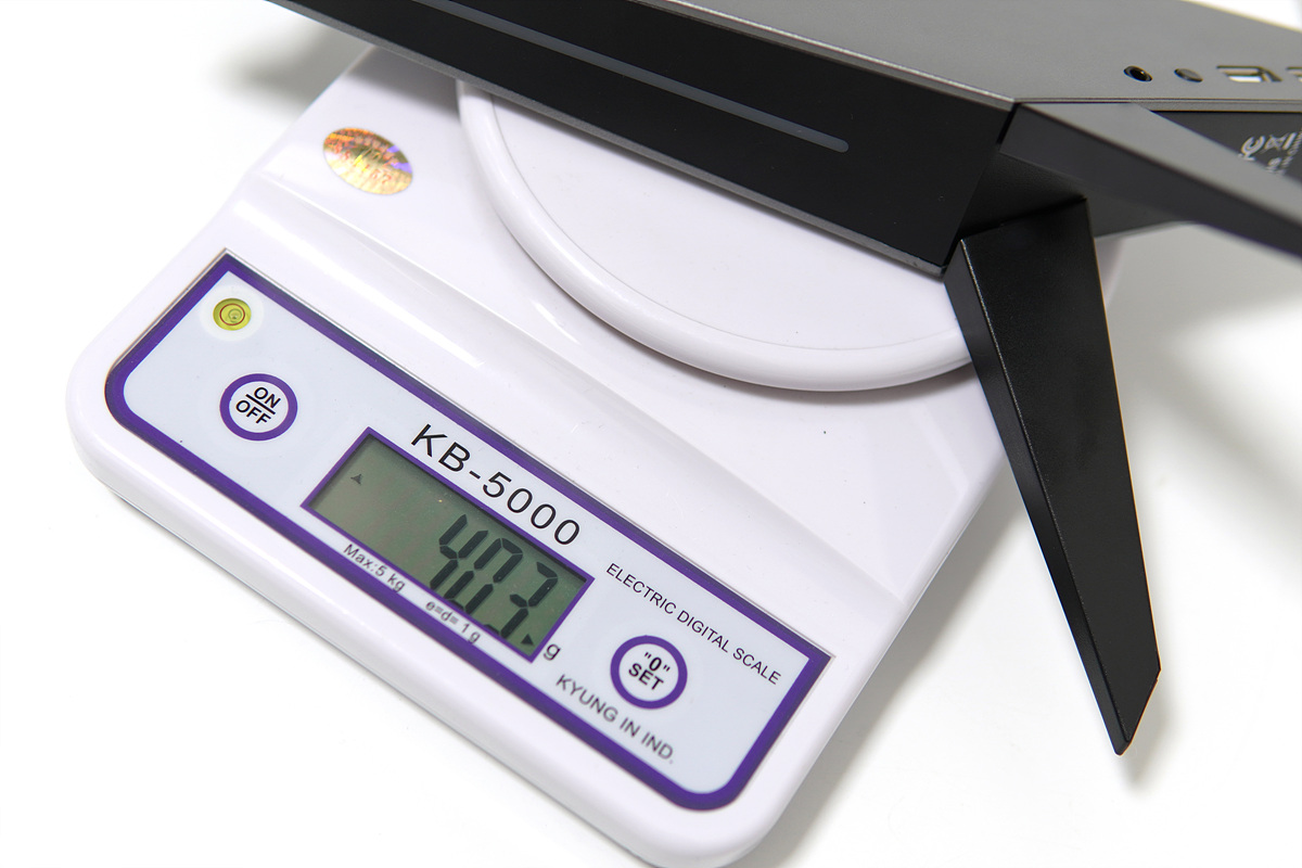 거치대는 케이블을 제외 403g으로 측정이 되었습니다. 거치대의 무게도 그렇고 삼각형 모양의 다리 때문에 헤드셋이나 헤드폰을 거치하더라도 흔들릴 염려는 없어 보입니다.