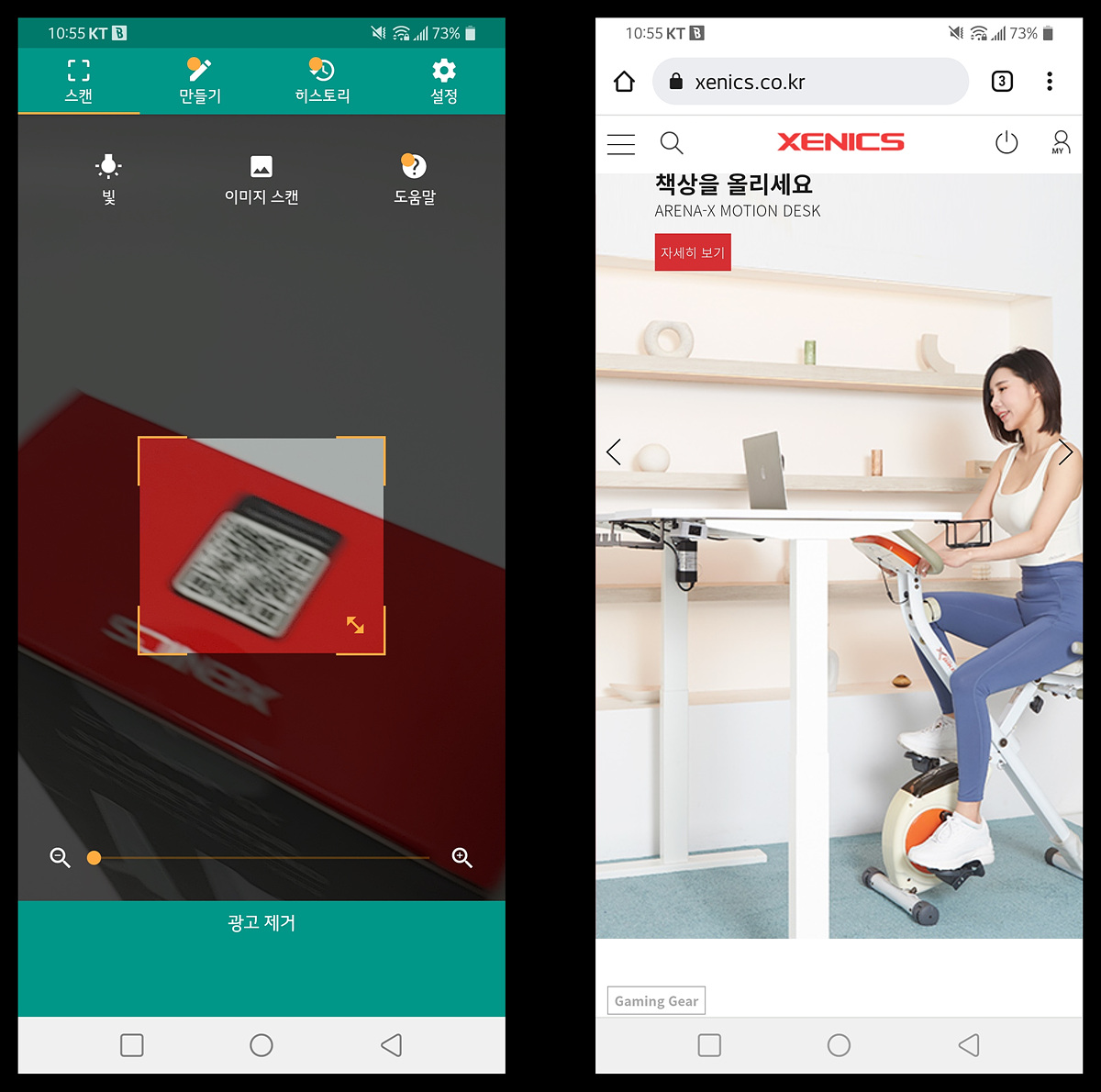박스에 있는 QR 코드를 인식하면 제닉스 홈페이지로 연결됩니다.