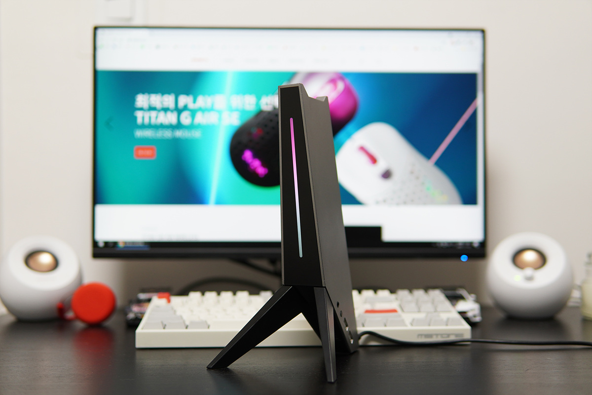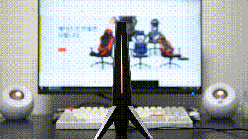 앞쪽의 RGB LED는 화려함보다는 은은하게 켜지는 스타일입니다. 제품의 디자인처럼 이 부분 역시 호불호가 좀 갈릴 거라 생각합니다. (전 화려함보다는 이렇게 은은한 스타일을 더 좋아합니다.)