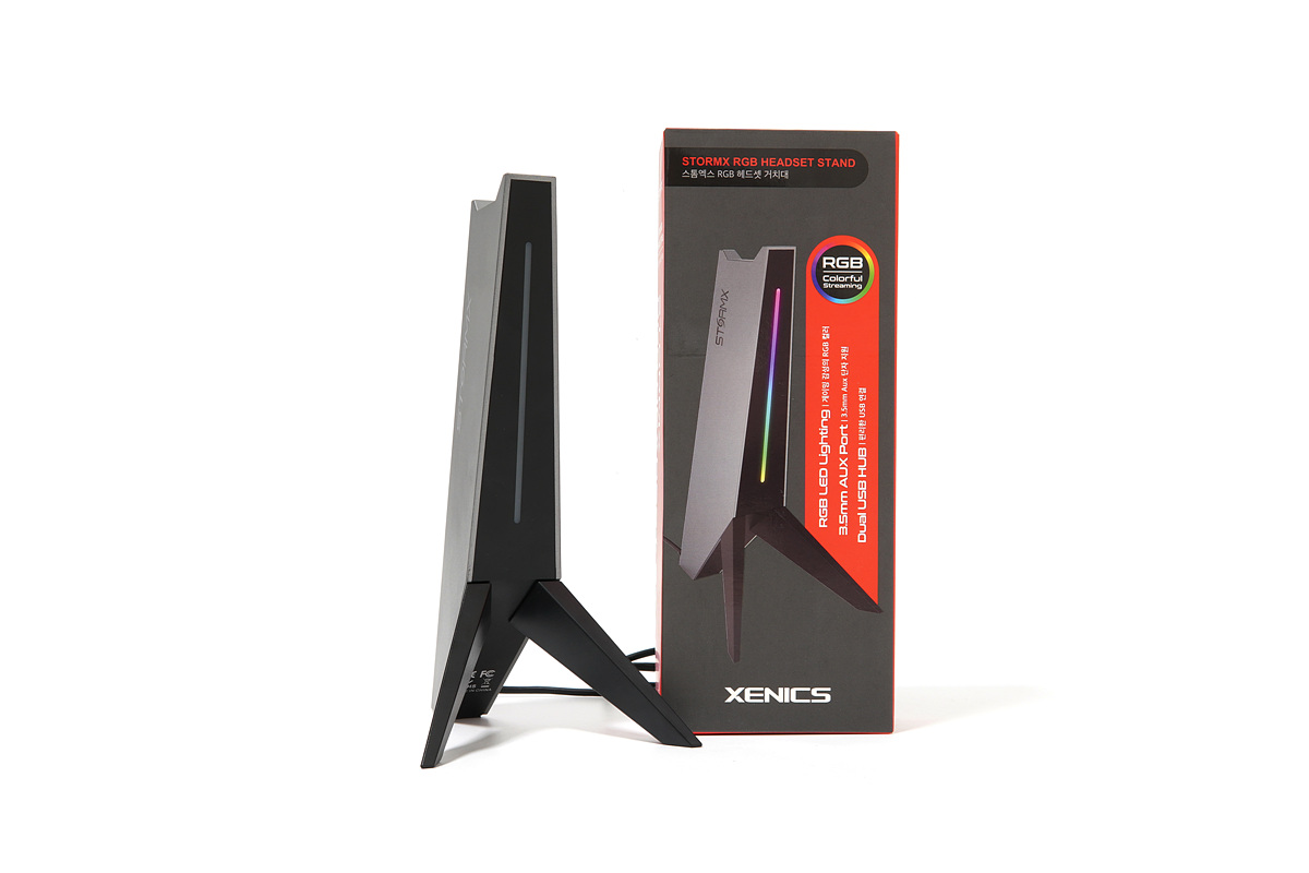 예전과 다르게 게이밍 관련 제품(gear)들이 많아지면서 이런 기기들을 활용하거나 보관할 수 있는 액세서리도 늘어나고 있습니다. 이번 시간에 소개할 제품은 게이밍 기어 중에서 헤드셋을 더 편리하게 보관할 수 있는 액세서리로 제닉스에서 새롭게 출시한 STORMX RGB 헤드셋 거치대입니다. 이 제품은 단순히 헤드셋을 보관(거치)하는 용도뿐만 아니라 요즘 게이밍 시대에 맞는 RGB LED가 포함되어 있습니다. 뿐만 아니라 USB 허브와 3.5mm 커넥터를 포함하고 있어서 여러 가지 입력 기기들을 사용을 할 수 있습니다.