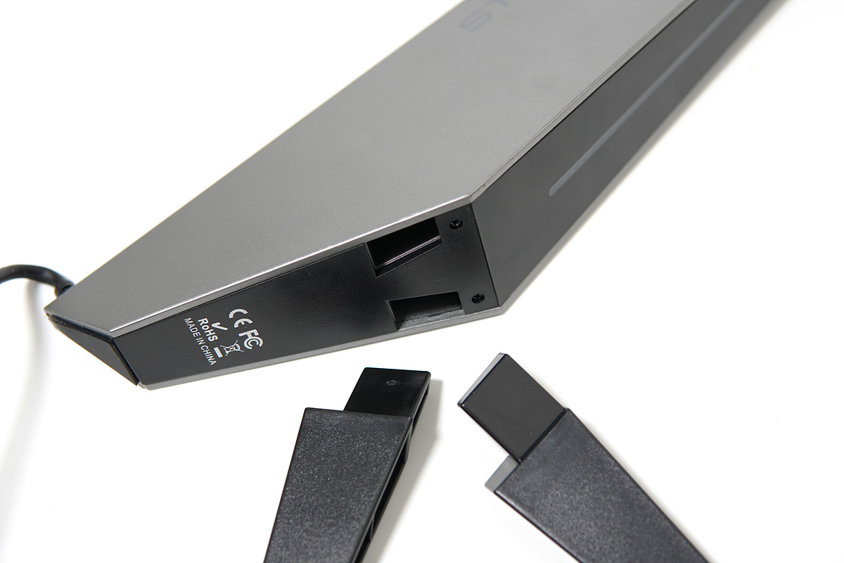거치대 중간에 세로 방향으로 LED 바(Bar)가 있습니다.