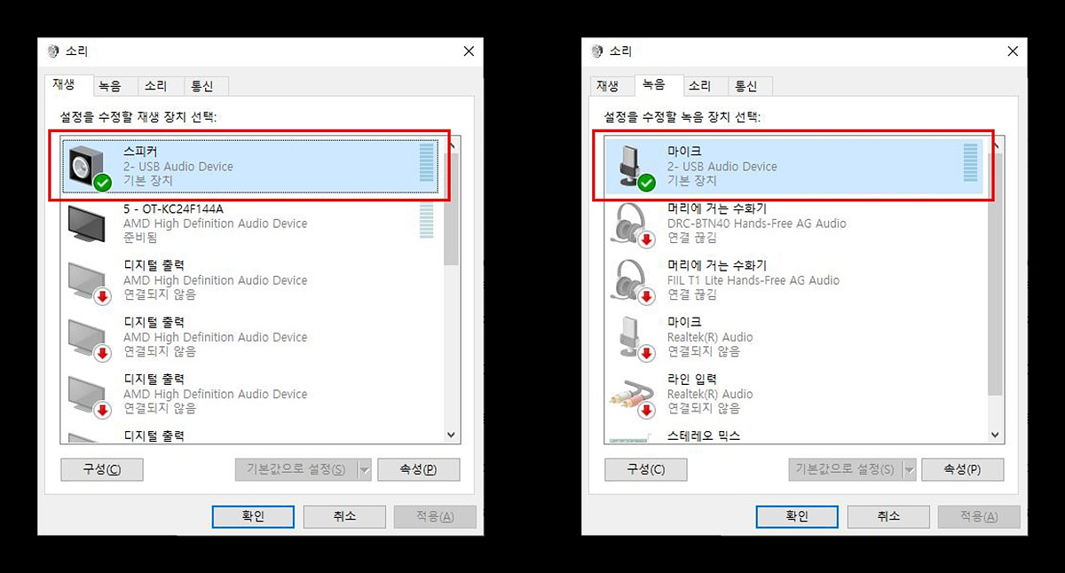 자체 DAC가 있어서 사운드 출력과 마이크 입력 모두 사용할 수 있습니다. 위에서 소개한 대로 3극 이어폰이나 마이크 단독으로도 사용할 수 있으므로 제어판에서 기본장치 설정만 변경한다면 현재 사용하고 있는 스피커와 마이크 입력으로도 사용할 수 있습니다.
