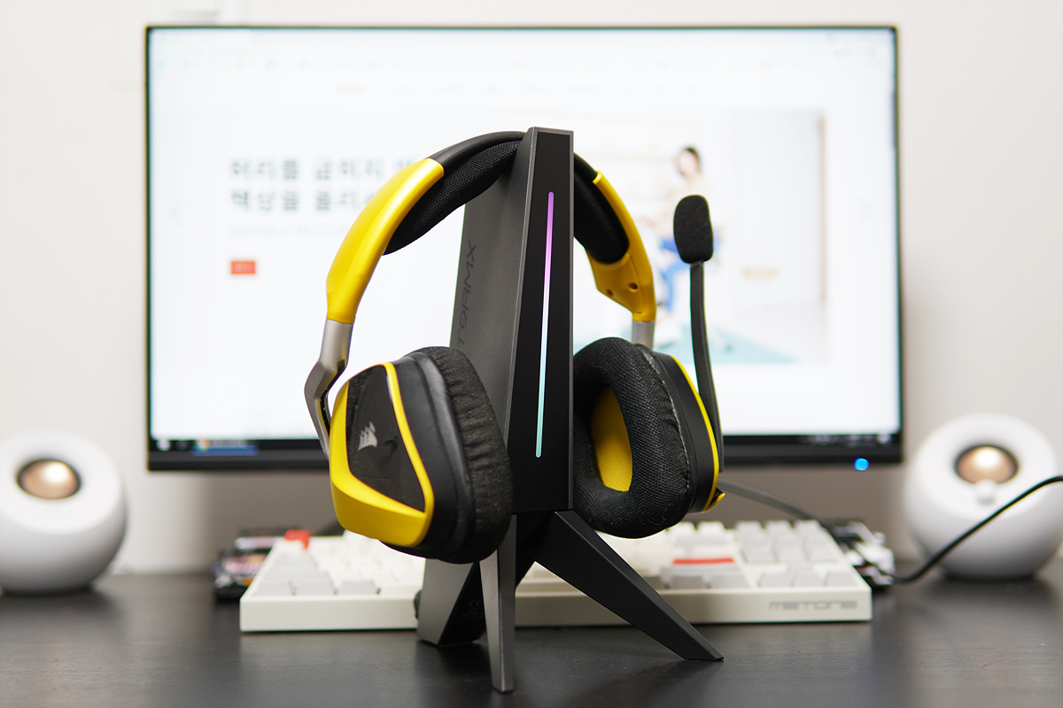 현재 사용하고 있는 커세어 보이드 프로(무선)와 체리 HC2.2 헤드셋(유선)에 사용을 했는데 거치대의 무게와 삼각형 모양의 다리로 인해 안정적으로 사용할 수 있었습니다.