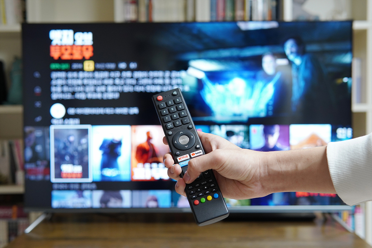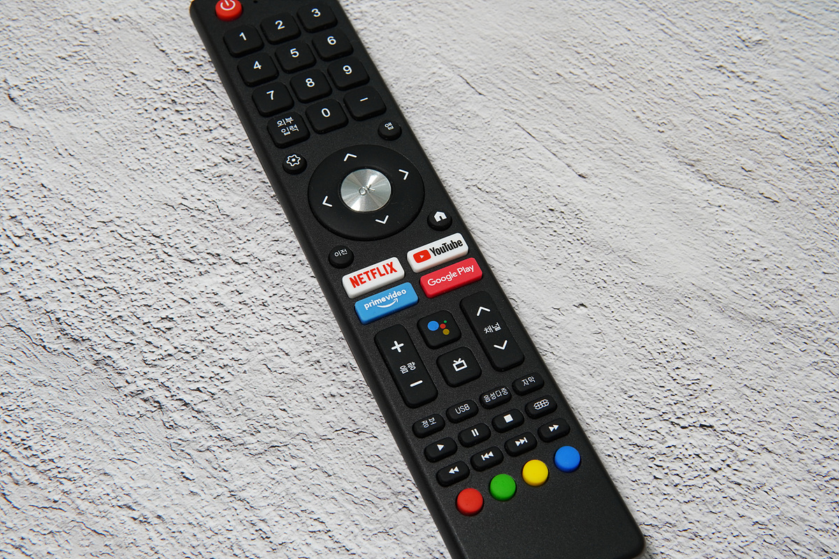리모컨의 유튜브와 OTT 버튼을 보면 이 TV가 어떤 제품인지 바로 알 수 있습니다. 안드로이드 OS로 동작을 하는 만큼 스마트폰에서 사용되는 대부분의 기능을 사용할 수 있습니다.