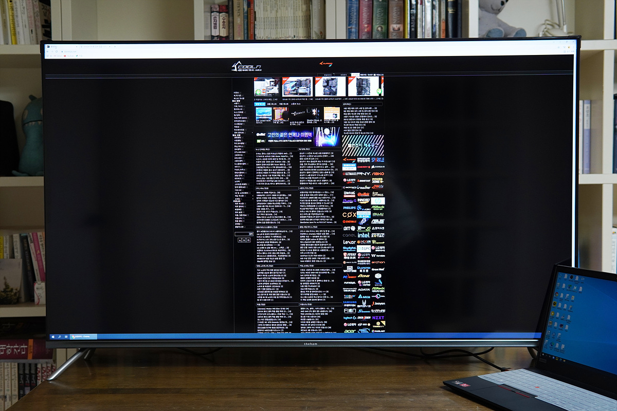 노트북과 연결해서 가장 놀랐던 부분은 문자의 가독성이었습니다. 이전에 테스트했던 TV보다 훨씬 좋은 가독성이라 모니터처럼 바로 앞이 아니라면 글자가 번지거나 퍼지는 부분이 전혀 문제 되지 않았습니다.