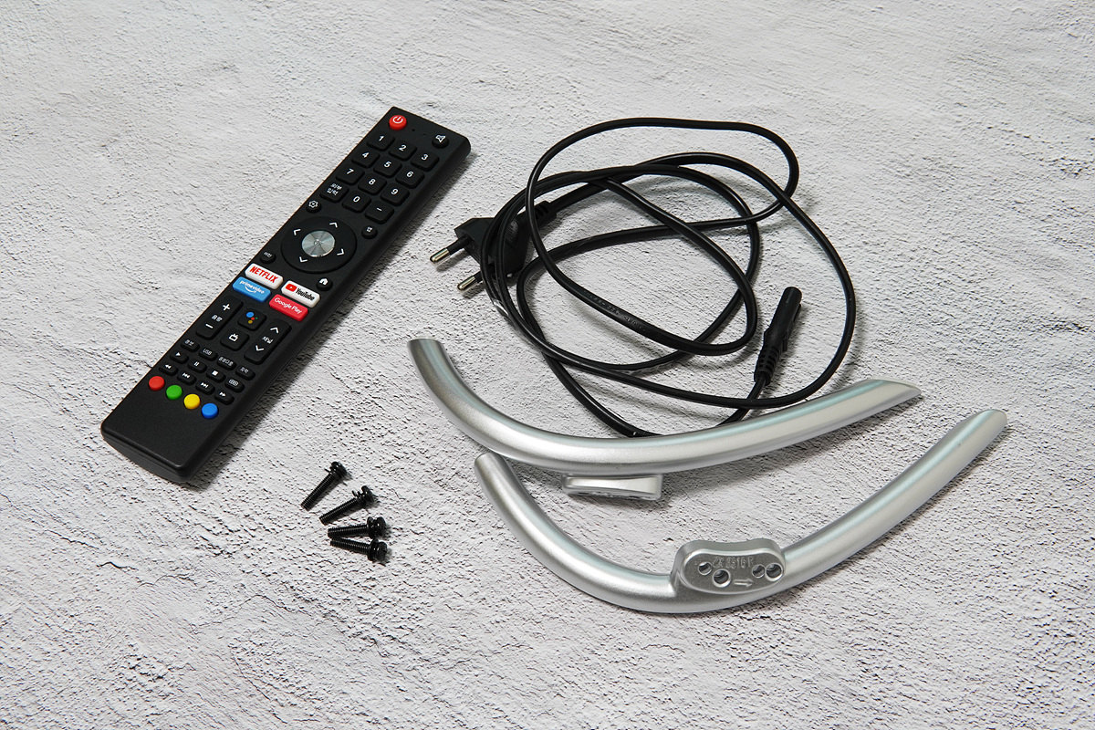 리모컨, 스탠드(다리)와 전원 케이블이 포함되어 있습니다. 제가 받은 제품은 테스트(샘플) 제품으로 설명서가 빠져있었습니다. (실제 판매되는 제품의 기능이나 구성품과는 조금 차이가 있을 수 있으니 참고해주세요.
