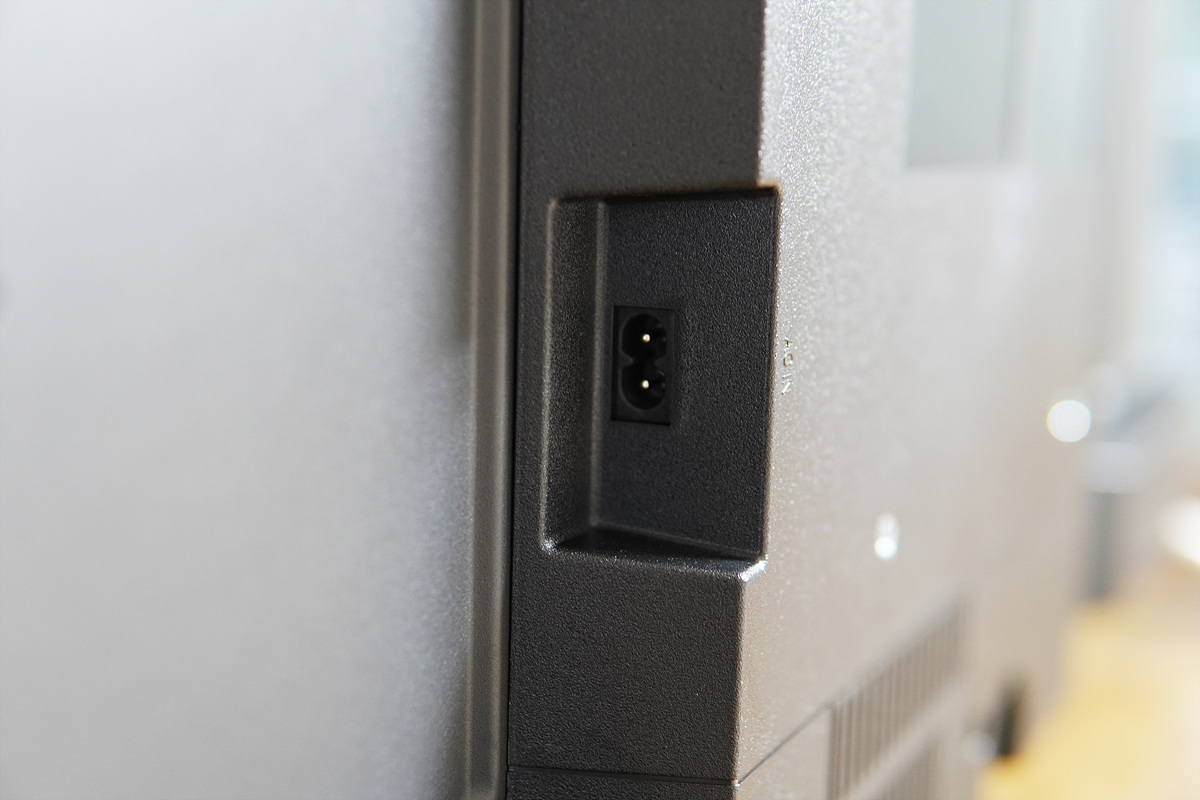 사용자를 기준으로 왼쪽 측면에는 입출력 포트가 있습니다. 4개의 HDMI 포트가 있으며 빨간 원의 HDMI 1번 포트는 사운드 바를 연결을 위한 HDMI ARC를 지원합니다. 4개의 HDMI 포트는 HDMI 2.1을 지원함으로 충분한 대역폭을 확보하고 있습니다. 광(光) 입력 단자가 있어서 플레이스테이션과 같은 콘솔기기뿐 아니라 다양한 오디오 기기와 연결할 수도 있습니다. 제일 아래쪽에는 유선 LAN 포트가 있으며 무선(Wi-Fi)으로 연결을 할 수도 있습니다.