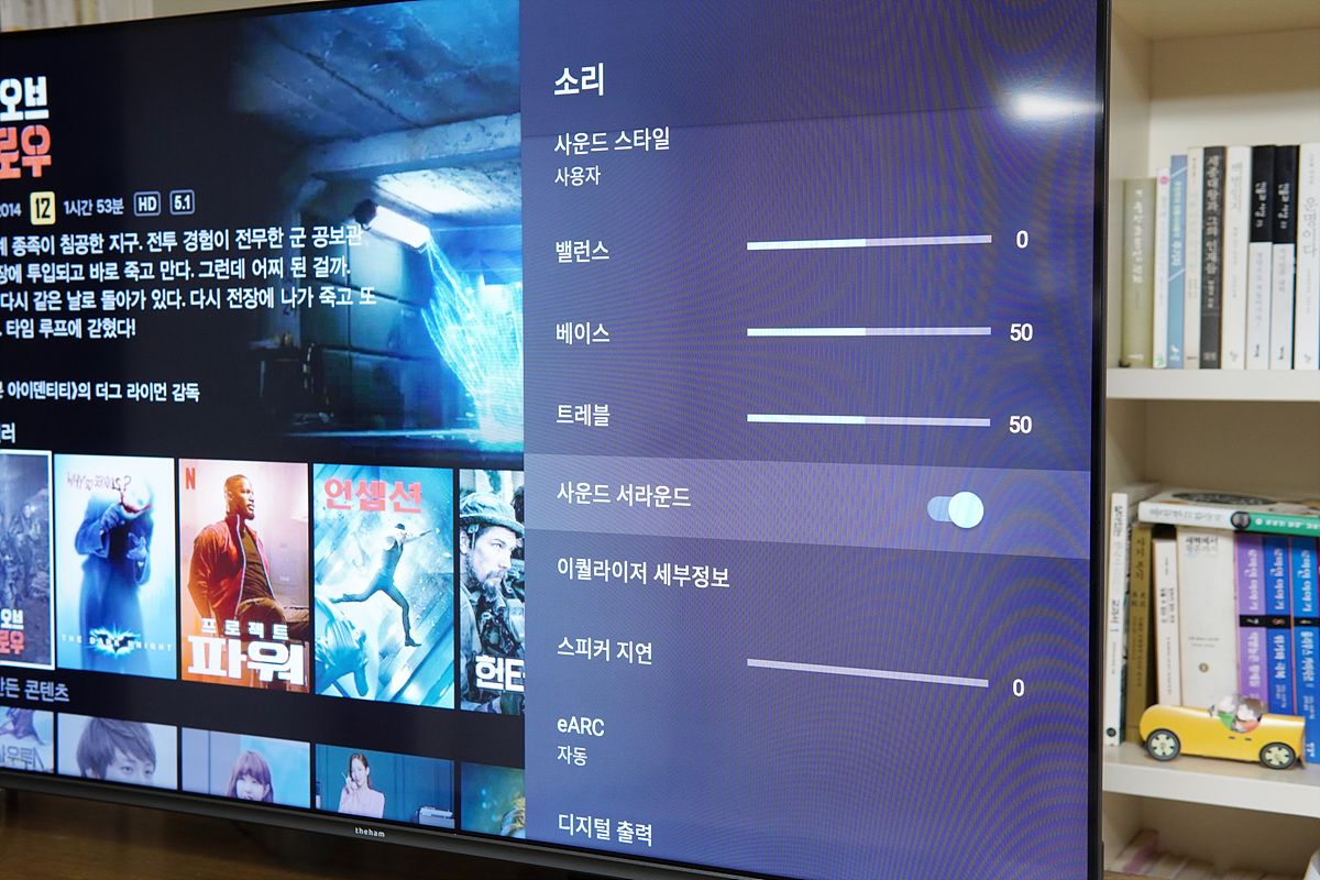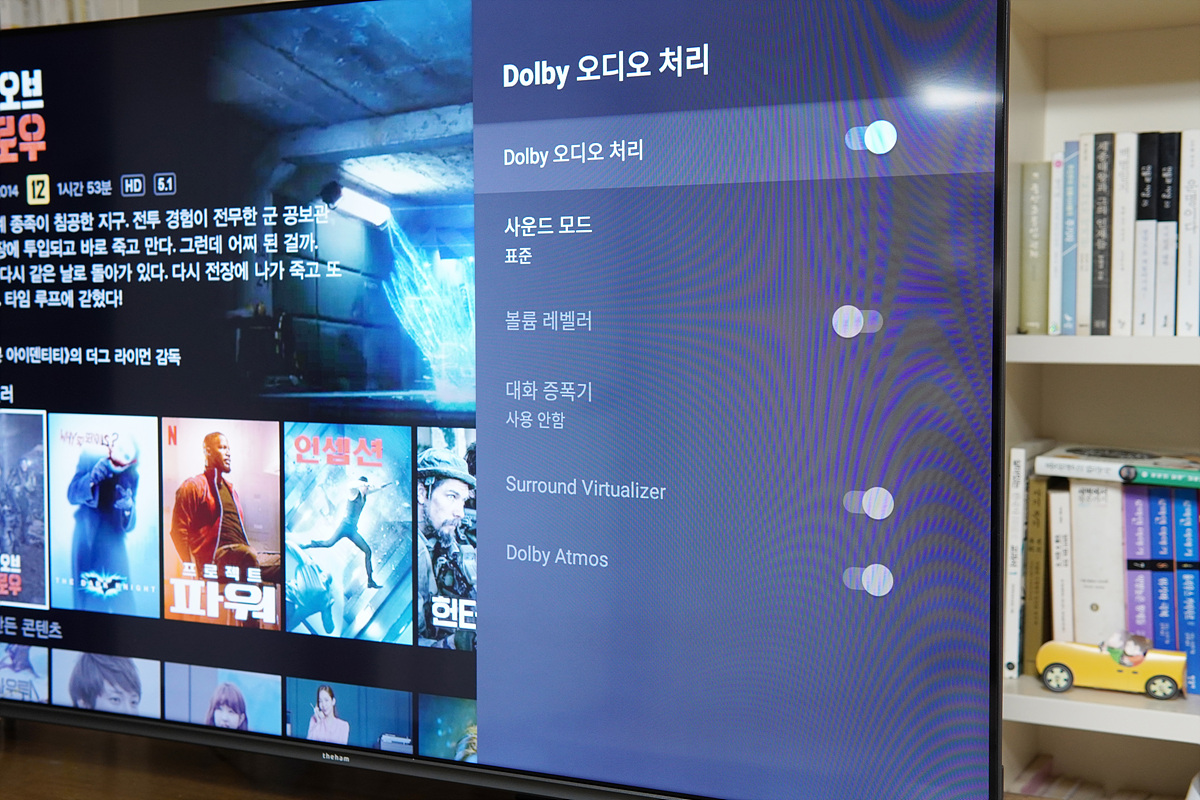 영상에서 돌비 비전이 있다면 사운드에서는 돌비 애트모스 기능이 있습니다. 영상 소스에서 돌비 애트모스 인코딩이 되어있다면 알람이 뜨고 더욱 확실한 효과를 느낄 수 있습니다. (요즘 넷플릭스 신작에는 많이 적용이 되더군요) 아무래도 기본 스피커는 크기와 위치 때문에 저렴한 사운드바를 사용하면 더욱 좋습니다.