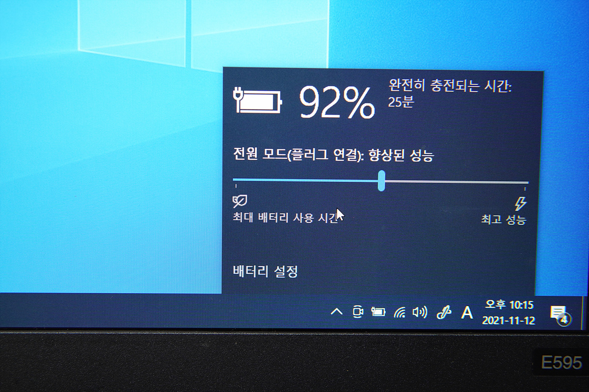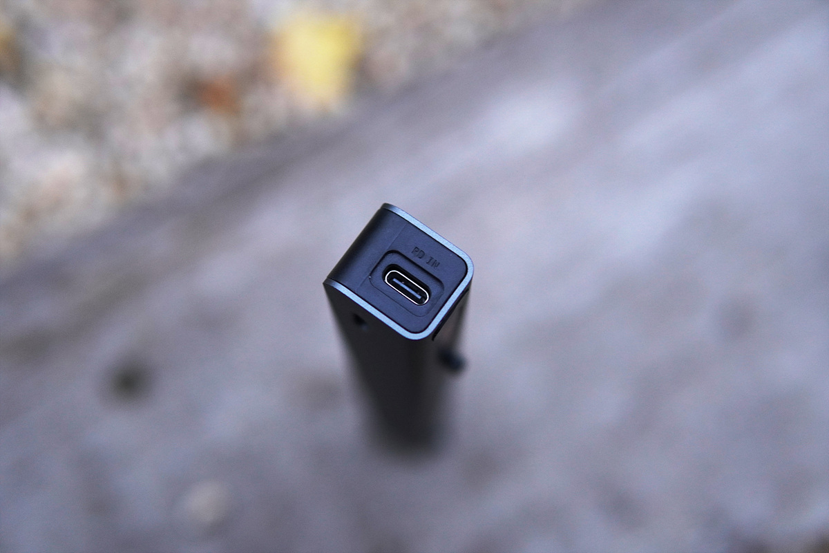 충전 케이블이나 노트북의 Type-C 포트에 연결하면 파란색 LED가 켜집니다.