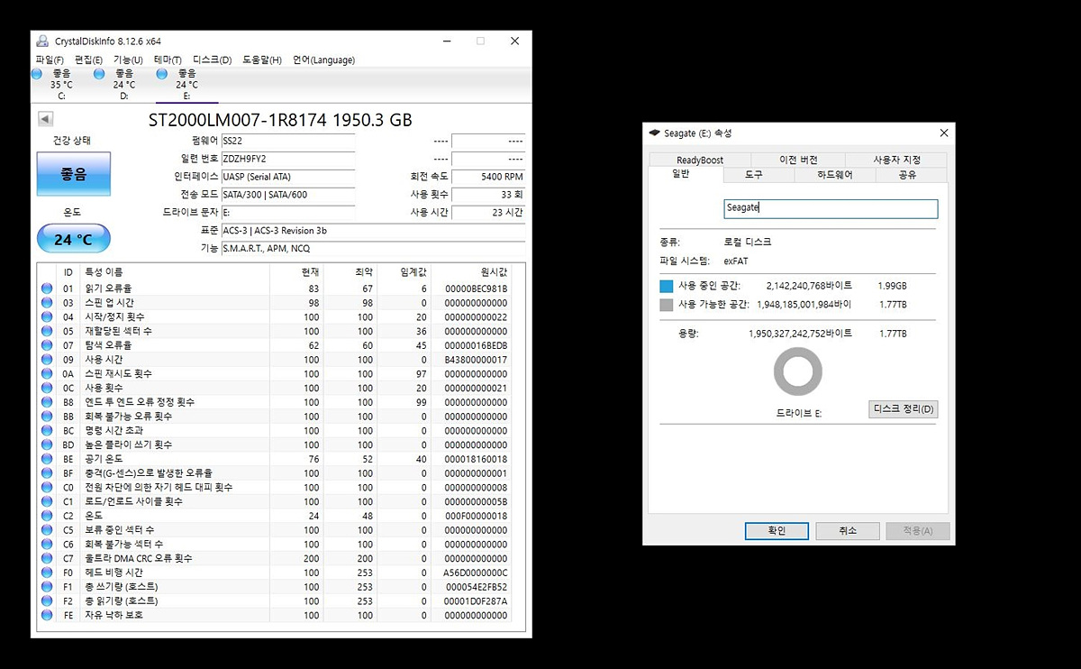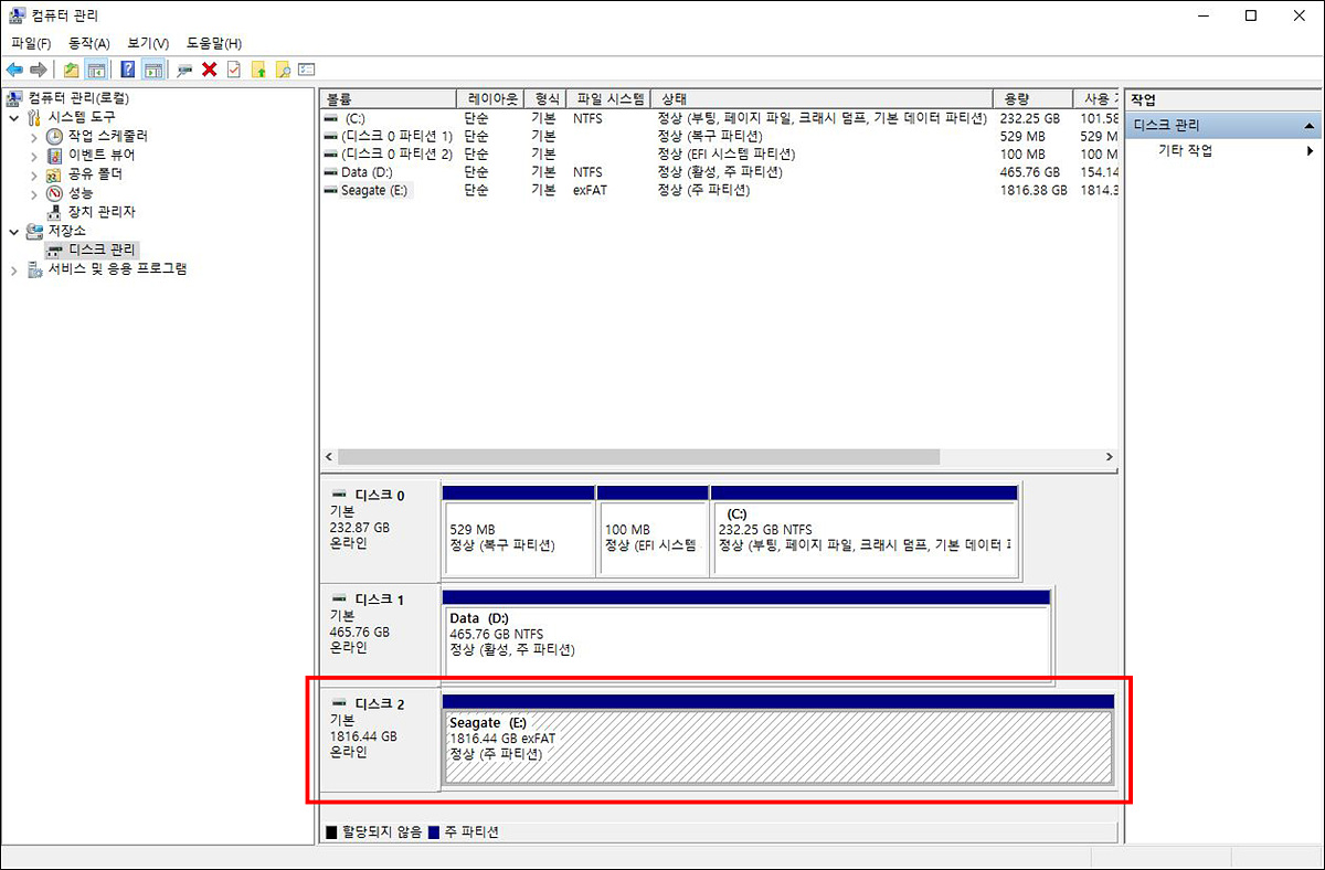 장치 관리자나 디스크 관리에서 제품을 확인할 수 있습니다.