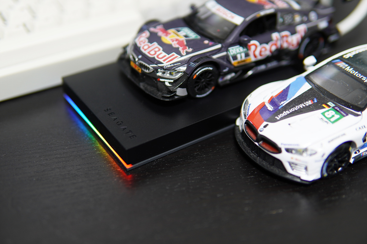 별다른 전원 없이도 RGB LED 효과를 보여주고 있습니다. 다른 브랜드에서도 LED가 있는 외장 HDD가 있지만 별도로 조절할 수 없고 특히나 동기화(Sync)는 지원하지 않습니다.