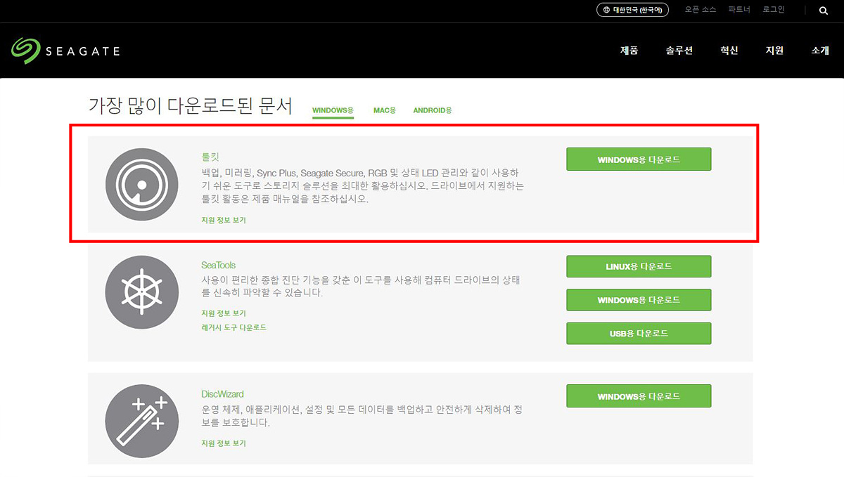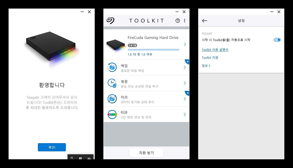 HDD의 관리나 백업 RGB 변경을 위해서 Seagate Toolkit이 필요합니다.