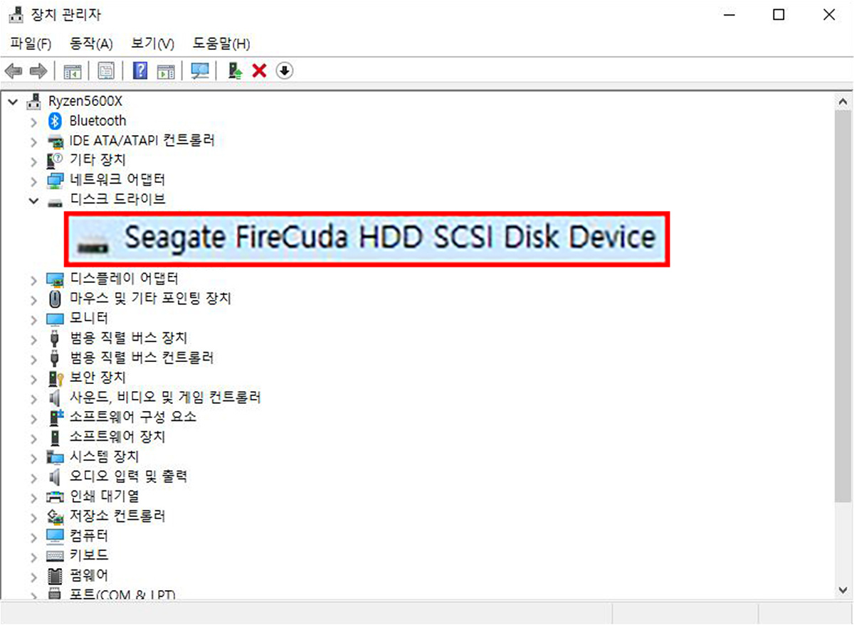 장치 관리자나 디스크 관리에서 제품을 확인할 수 있습니다.