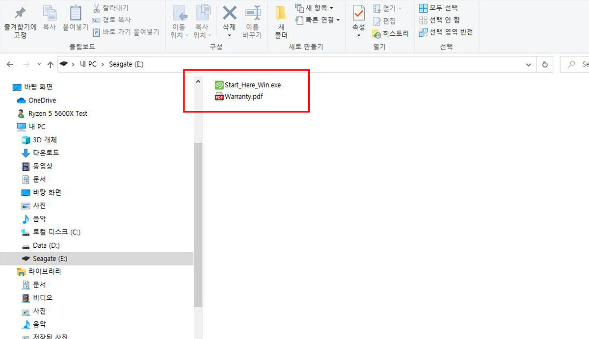 드라이브를 확인하면 파일 두 개가 있습니다.