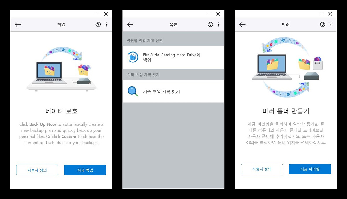 PC에 있는 파일이나 폴더의 백업 그리고 동기화(미러링)를 사용할 수 있습니다. 주기적으로 많은 데이터가 발생된다면 동기화를 통해서 보다 편리하게 데이터를 보관할 수 있습니다.