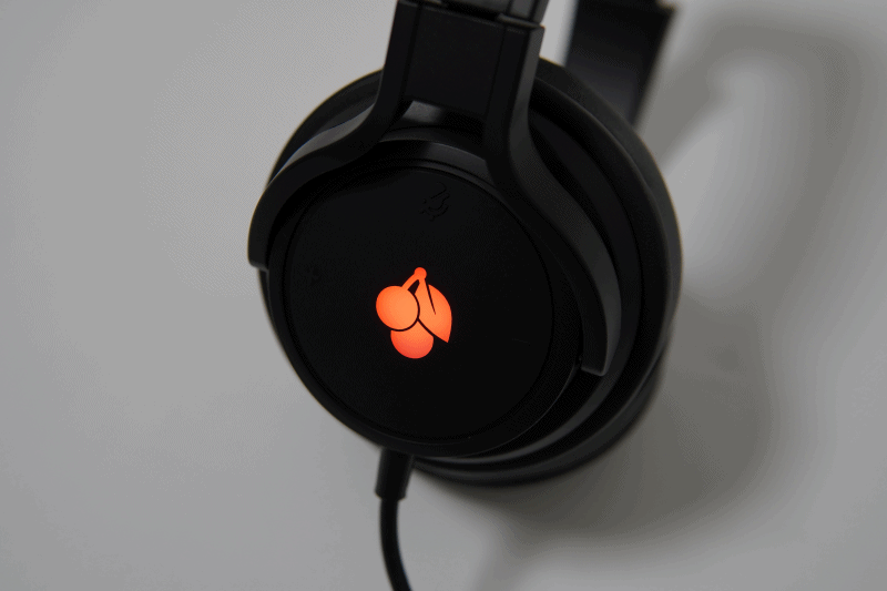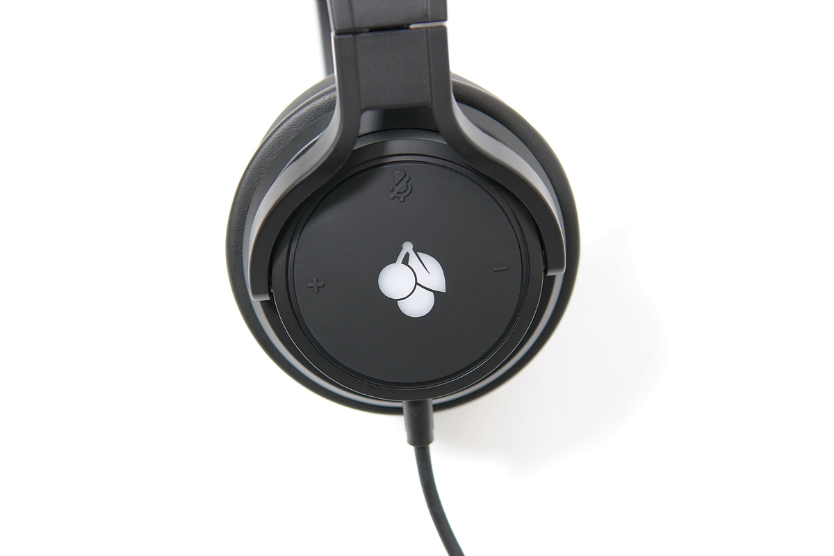 헤드밴드 위쪽으로는 체리 로고가 각인되어 있으며 머리에 닿는 부분은 쿠션으로 마감이 되어 있습니다.