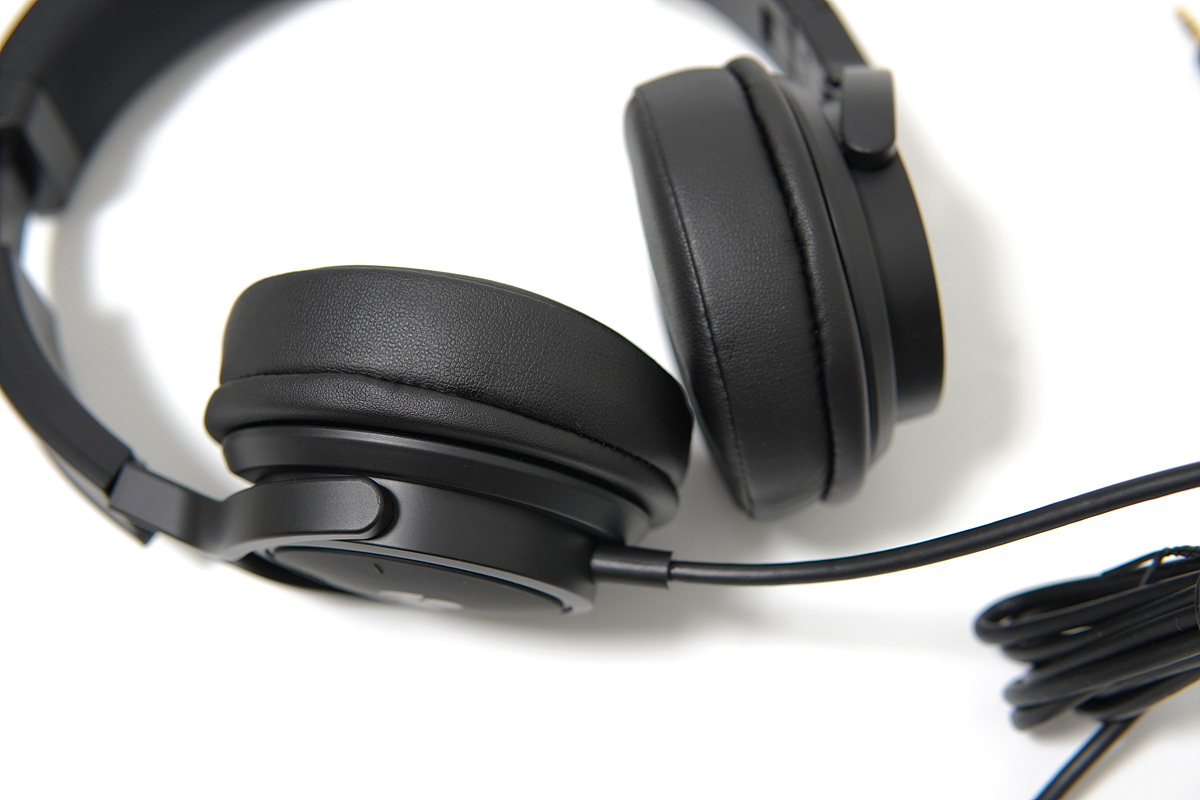 헤드셋은 접이식이라 50mm 드라이버를 사용한 다른 제품들보다 조금 더 작게 느껴집니다. 헤드셋을 보관할 때나 이동할 때는 편리할 거 같습니다.