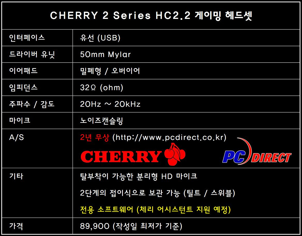 키보드의 스위치와 기계식 키보드로 많은 사랑을 받아온 체리(CHERRY)에서 새로운 게이밍 기어(gear)인 헤드셋이 출시가 되었습니다. 체리 마우스에 이어 헤드셋까지 출시함으로 게이밍 기어(gear)의 라인업을 조금씩 넓혀가고 있지만 아직까지는 키보드에 대한 이미지가 많이 강한 편입니다. 이번에 소개하는 HC 2.2 게이밍 헤드셋은 체리 기계식 키보드의 MX Board 2.0과 같은 라인의 제품입니다. 체리 제품은 x.0은 키보드 / x.1은 마우스 / x.2은 헤드셋으로 분류가 되는 거 같습니다.