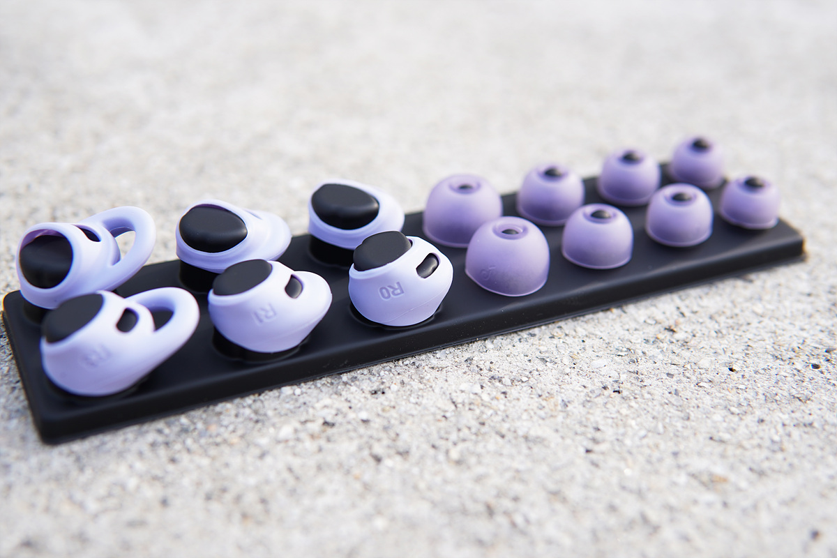 이어 윙과 이어 버드에는 크기와 방향 표시가 되어있으며 오른쪽 이어 버드에도 빨간색으로 R 표시가 확실하게 되어있어서 좌우 구분을 쉽게 할 수 있습니다.