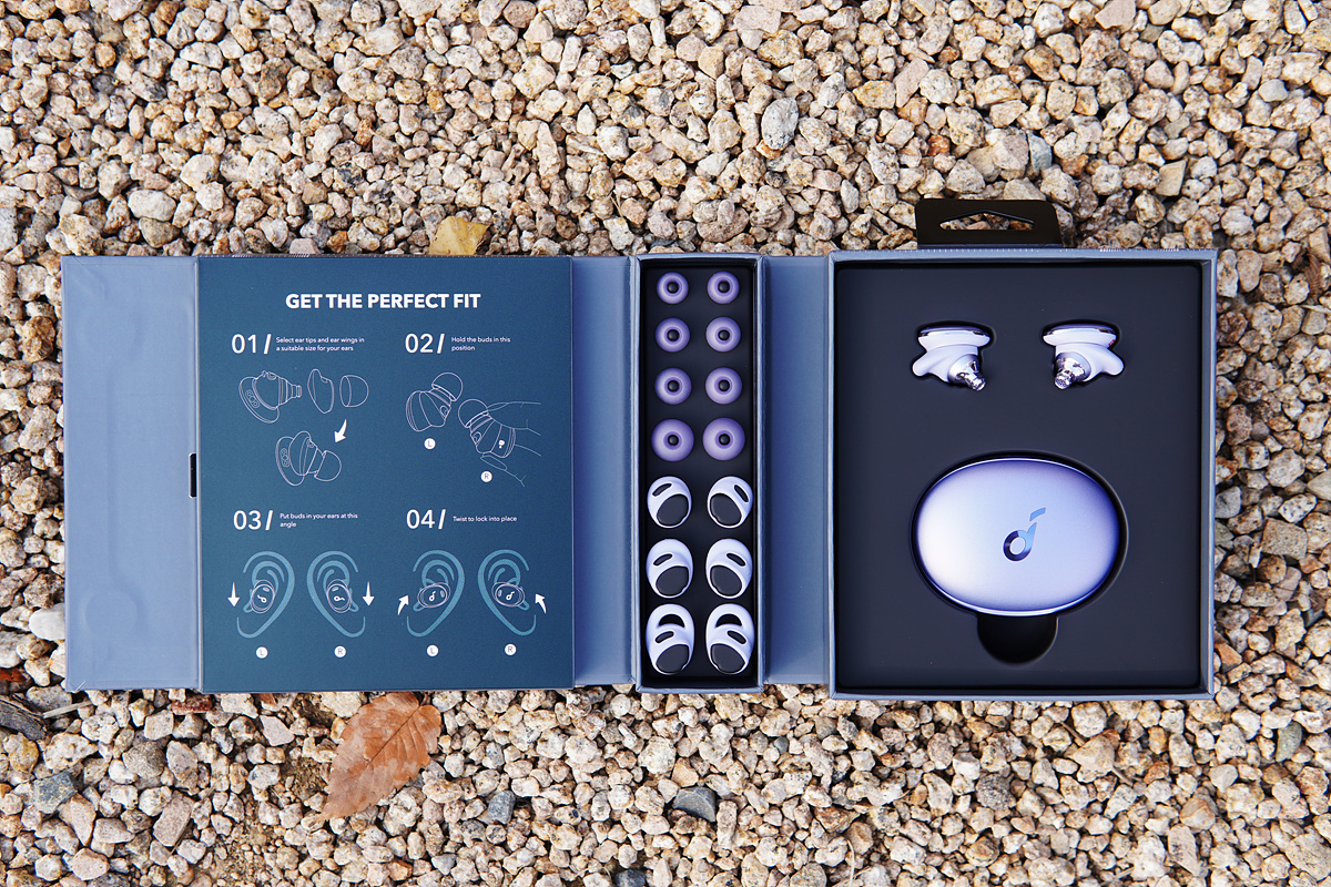 1. 고급스러운 포장 방식과 구성품 (이어 팁, 이어 윙)