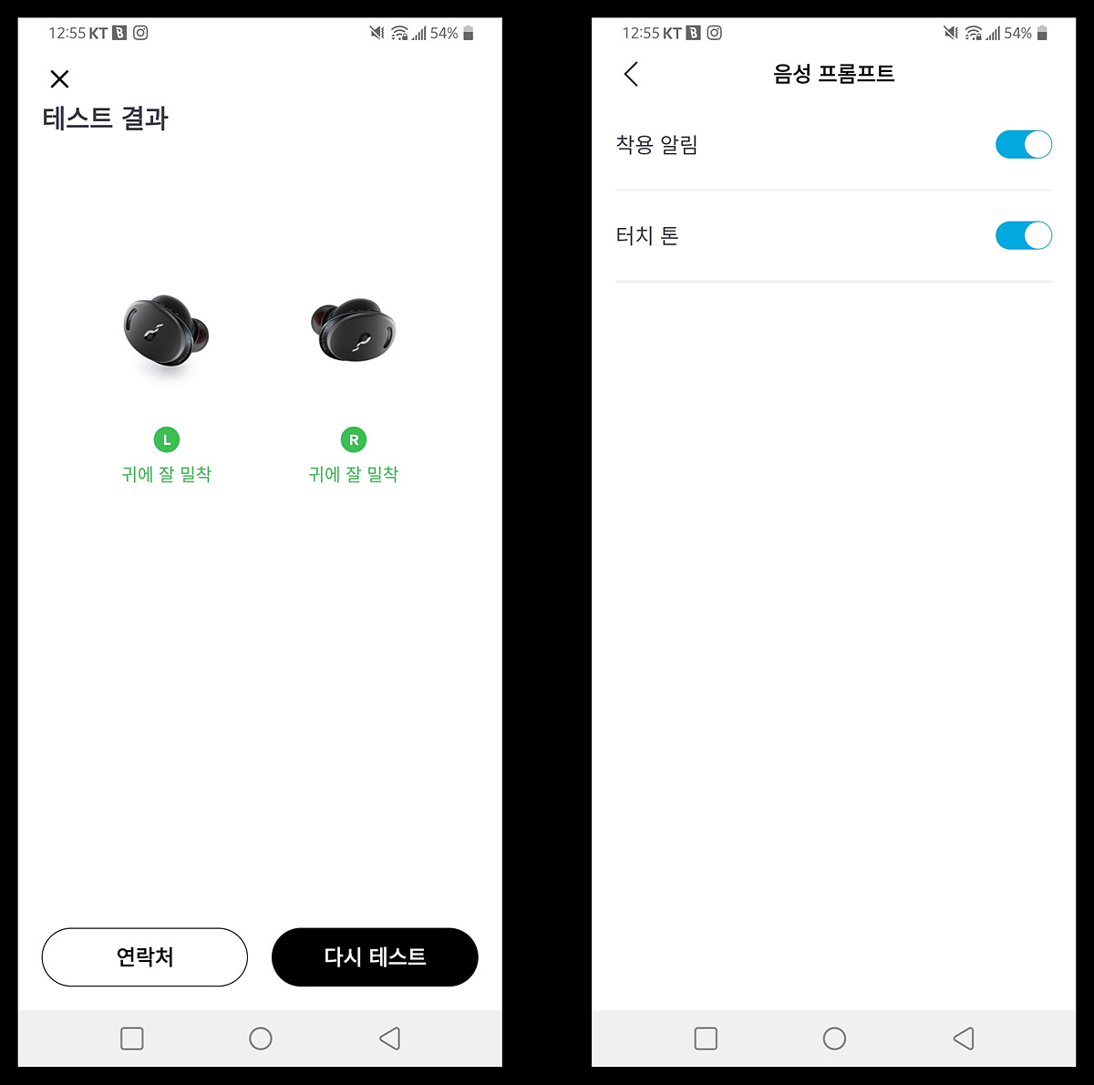 HEAR ID를 실행하기 전에는 이어 버드가 귀에 잘 장착되어있는지 테스트를 먼저 하시길 바랍니다. 착용 알림이나 터치 톤 기능을 활성화하면 기능을 실행할 때마다 버저음이 울립니다. (기능에 따라 버저음의 높낮이나 횟수가 달라집니다.)