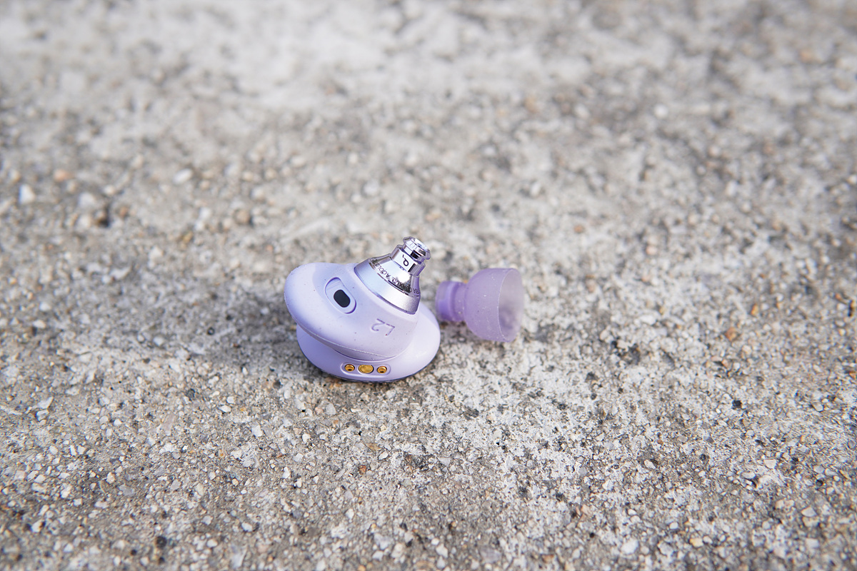 이어 버드에는 각각 3개의 마이크와 착용 감지 센서가 장착되어 있으며 이어 팁의 확실한 고정을 위해 노즐 한쪽은 평평하게 처리가 되어 있습니다.