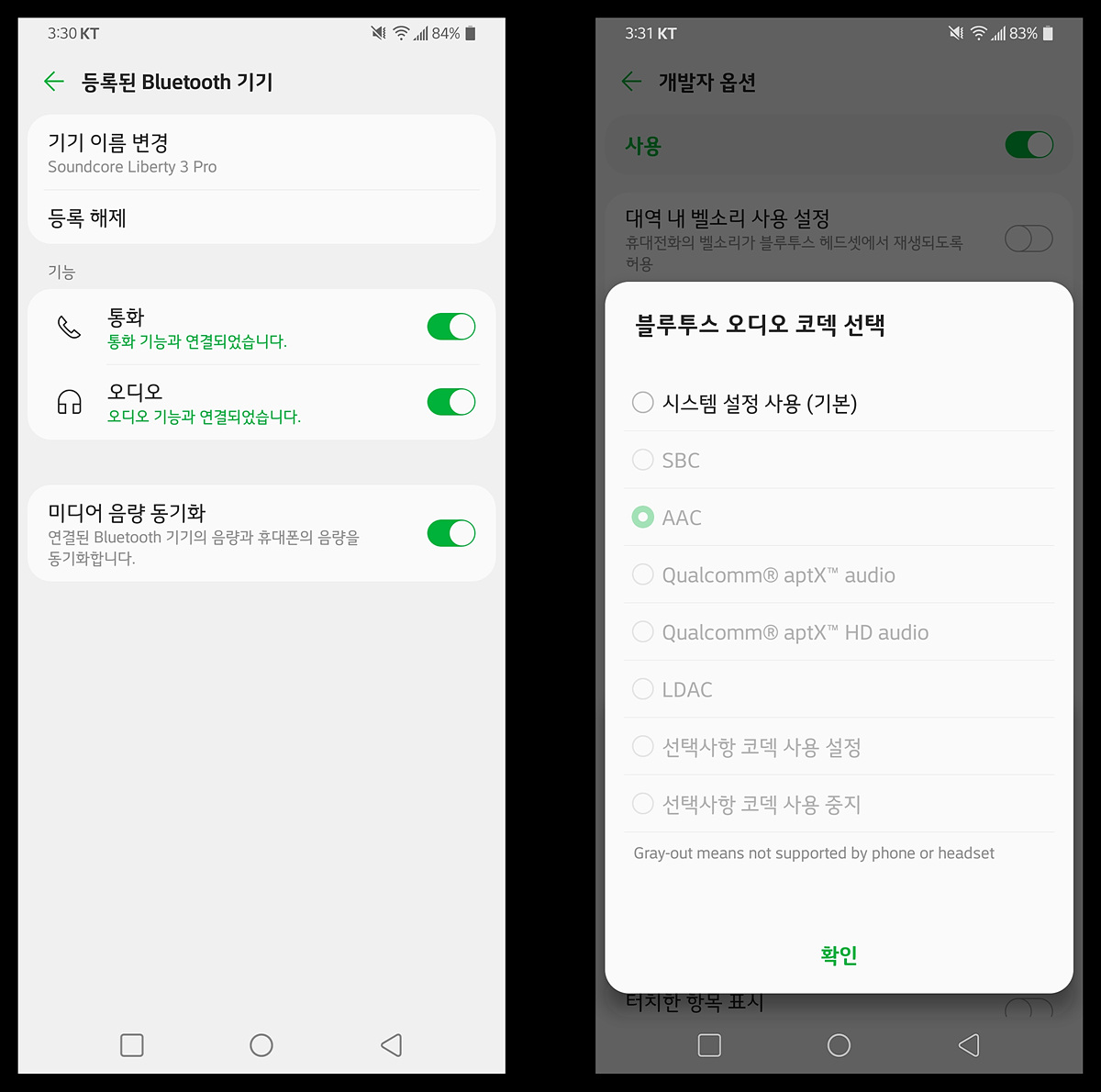 페어링을 했는데 이상하게 LDAC 연결의 옵션이 보이질 않더군요. 개발자 옵션에서도 LDAC 코덱이 비활성화가 되어있습니다. 이상하다?라고 생각했는데 LDAC 활성은 전용 앱에서 따로 활성을 해주어야 하더군요. 아래에서 소개를 하겠습니다.