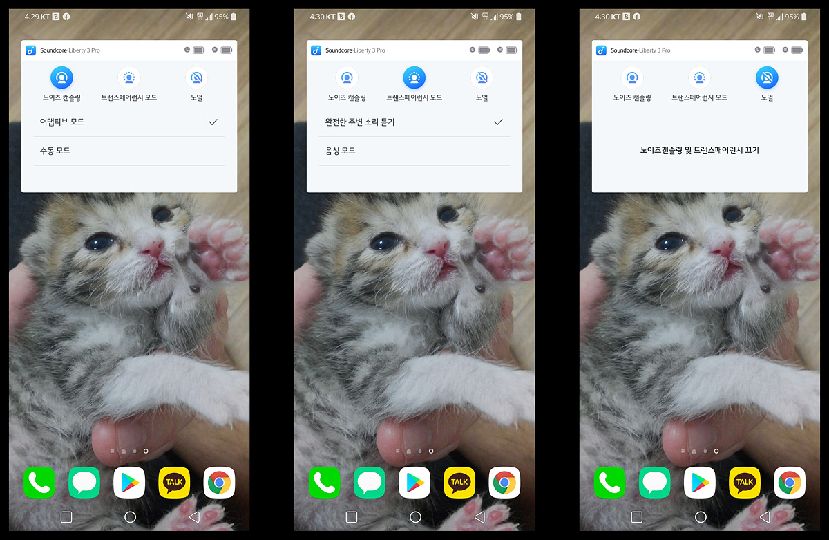 터치로 변경을 할 수도 있지만 위젯으로도 노이즈 캔슬링 / 트랜스페어런시 / 노멀을 빠르게 변경할 수 있습니다. 노멀은 말 그대로 노캔과 트랜스페어런시를 모두 끝 상태입니다.