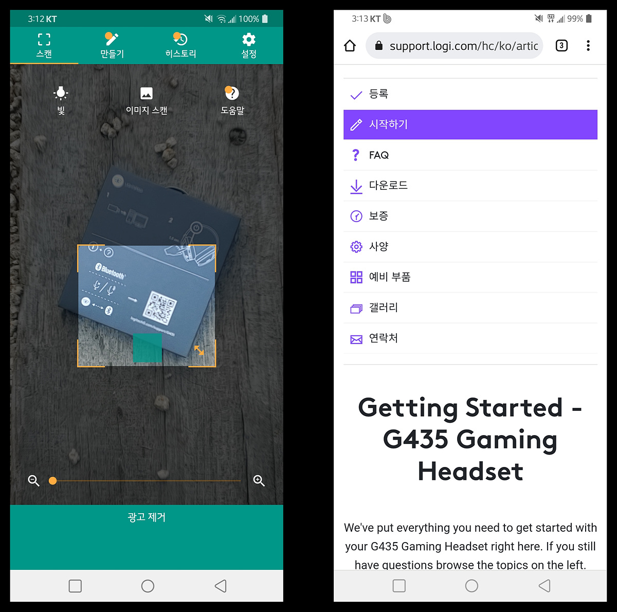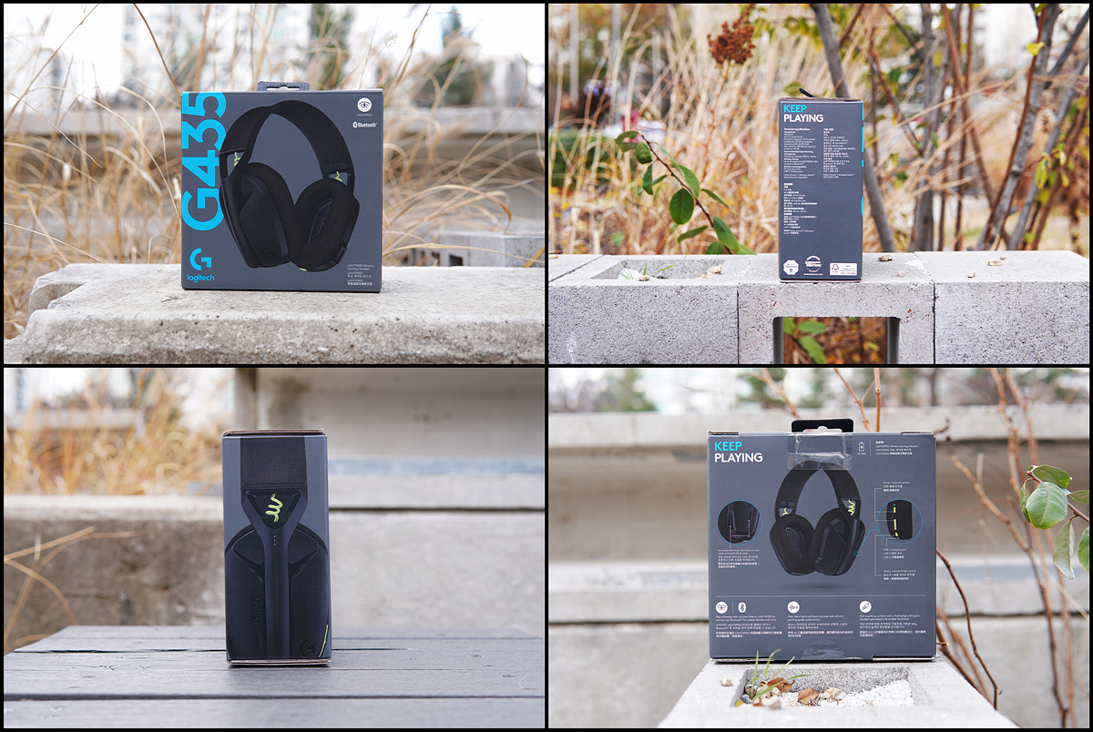 액세서리 박스에는 로지텍의 무선 기술인 LIGHTSPEED (수신기)와 블루투스 연결에 대해 설명하고 있으며 QR 코드를 인식하면 로지텍 홈페이지로 연결이 되며 G435의 정보와 설명서(영문)를 다운로드할 수 있습니다.