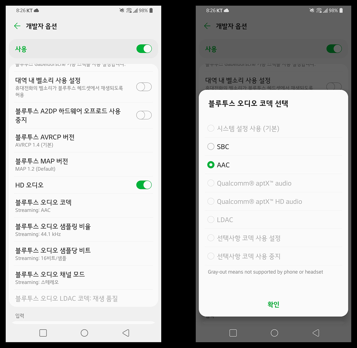 4. AAC 코덱 지원 (블루투스)