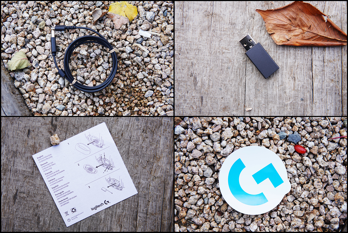 무선 수신기, Type-C 충전 케이블, 로지텍 스티커와 설명서가 있습니다. 아래에서 다시 다루겠지만 G435 헤드셋은 꽤나 많은 기능을 가지고 있는데 이런 기능에 비해 설명서는 턱없이 부족합니다. QR 코드로 제품의 설명서 다운로드할 수 있지만 한글이 아닌 영문으로만 설명이 되어있더군요. 많이 아쉬운 부분입니다.