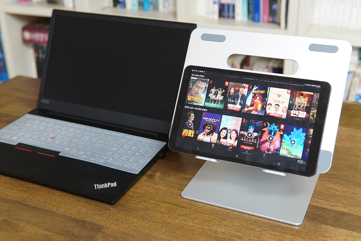 노트북 거치대라고 노트북만 거치하는 게 아니라 태블릿이나 독서대처럼 사용할 수도 있습니다. 실제로 사용을 해보면 장력을 조절할 수 있는 기능이 정말 좋더군요.