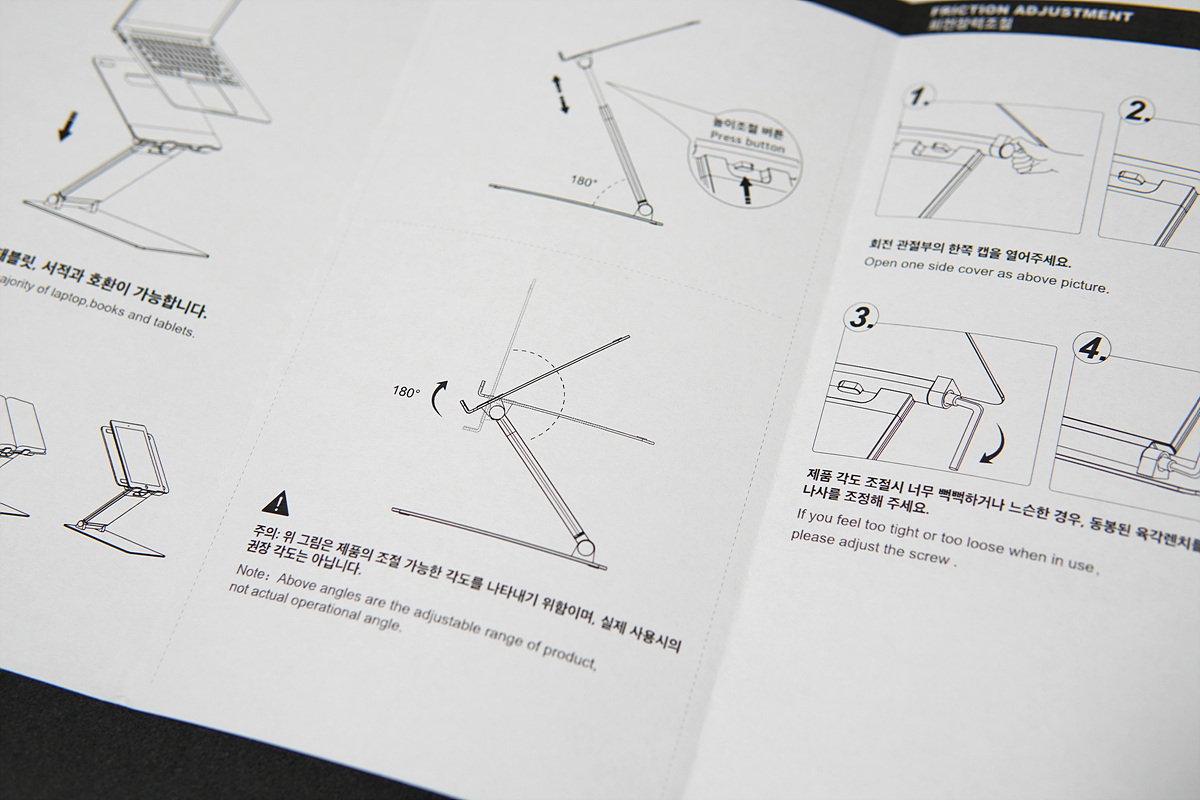 단순히 각도만 조절하는 스탠드가 아니라 두 개의 관절을 이용해서 사용자에게 가장 편리한 높이와 위치로 조절할 수 있습니다.