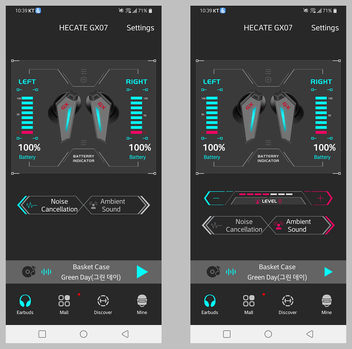 음성 안내에서는 노이즈 캔슬링이 아닌 노이즈 리덕션으로 안내를 하는데 이게 맞을 정도로 노이즈 캔슬링의 범위나 강도가 많이 낮았습니다. 일반적으로 ANC의 경우도 고음이 아닌 저음역대의 노이즈 감쇄가 많이 되지만 GX07은 이런 범위나 세기가 다른 제품들에 비해 상당히 적은 편이라 동작을 하는 건가?라는 생각마저 들더군요. 요즘은 10만원 미만 제품들의 ANC 성능도 제법 좋은 편이라 더욱 실망을 하게 되었습니다.