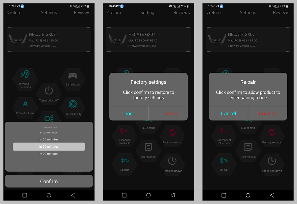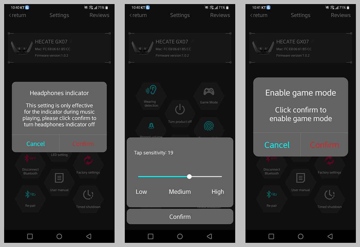 전용 앱이 있어서 추가 기능들을 사용할 수 있다는 부분이 좋긴 하지만 한글이 지원되지 않는 점이나 펌웨어 업데이트 같이 중요한 부분이 보이지 않는다는 것 역시 아쉬운 부분으로 남았습니다. 추가적으로 GX07에서 적용되는 LHDC 코덱에 대한 부분 역시 고음질 & 저지연을 위한 좋은 코덱이지만 현재 국내에서 사용되는 기기에서는 거의 사용할 수 없기 때문에 장점으로는 생각되지 않았습니다. 차라리 LDAC, aptX-HD와 같은 코덱을 넣는 편이 훨씬 좋았을 거라 생각합니다. 간혹 코덱 때문에 소리가 좋아진다는 이야기를 하는 분들이 있지만 실제로는 그렇지 않습니다.