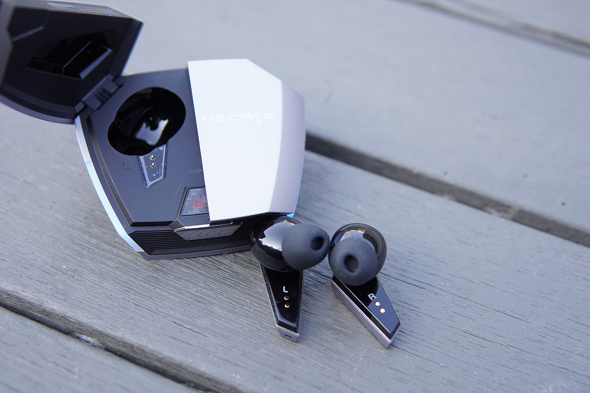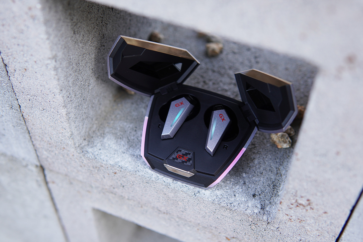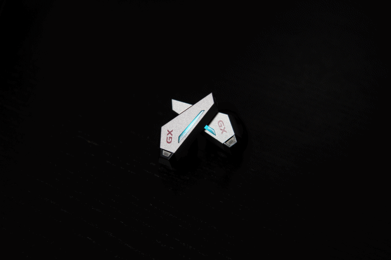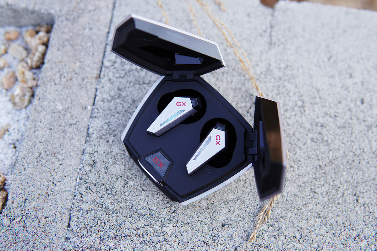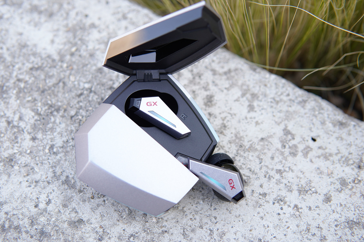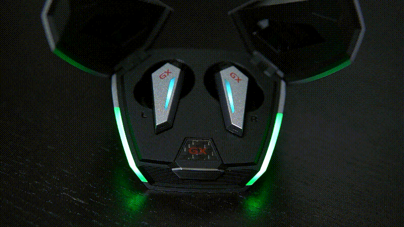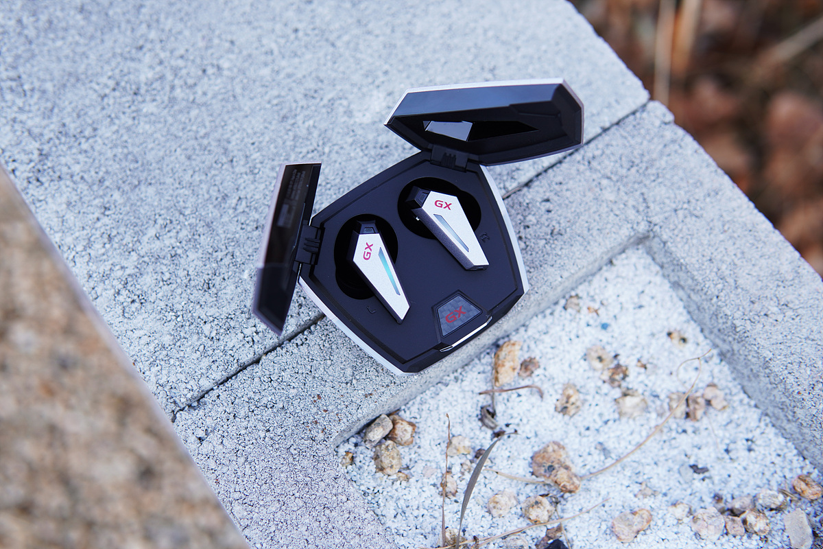 기존에 TWS 케이스들은 대부분 동그랗거나 둥근 사각형 모양으로 되어있는데 GX07 케이스 커버는 스포츠카의 윙 도어처럼 열리면서 페라리 엔초(Enzo) 같은 스포츠카를 보는 느낌입니다. 케이스 커버를 열거나 충전 중에는 측면 라인에서 RGB LED가 켜지게 됩니다. LED RGB가 대세가 된지라 이런 부분에 있어서는 좋은 효과를 보여줄 수 있지만 충전 케이스의 배터리 잔량을 확인할 수 있는 LED가 없다는 건 상당히 아쉬웠습니다. 보통은 케이스 앞쪽에 LED 한 개라도 넣어주는데 GX07은 배터리 잔량을 확인할 수 있는 어떤 표시도 없었습니다.