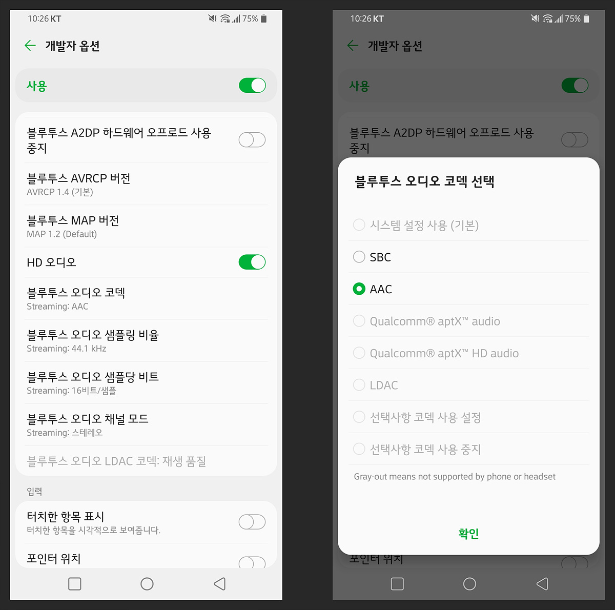 코덱은 SBC / AAC를 지원합니다. 제품의 DB나 박스에 보면 LHDC를 지원한다고 되어있는데 aptXHD나 어댑티브와 같이 고음질, 저지연을 지원하는 좋은 코덱이지만 아직 대중화가 되어있지 않으며 특히나 중국 기기인 화웨이 스마트폰과 같이 일부 제품에서만 사용할 수 있기 때문에 대부분의 국내 소비자들의 대부분은 사용할 수 없습니다. LDAC 코덱이 대중화가 된 건 소니라는 브랜드도 있겠지만 안드로이드에서 무료로 사용할 수 있게 된 이유가 큰데 LHDC 역시 이런 과정이 없다면 보급화가 되기는 쉽지 않아 보입니다.