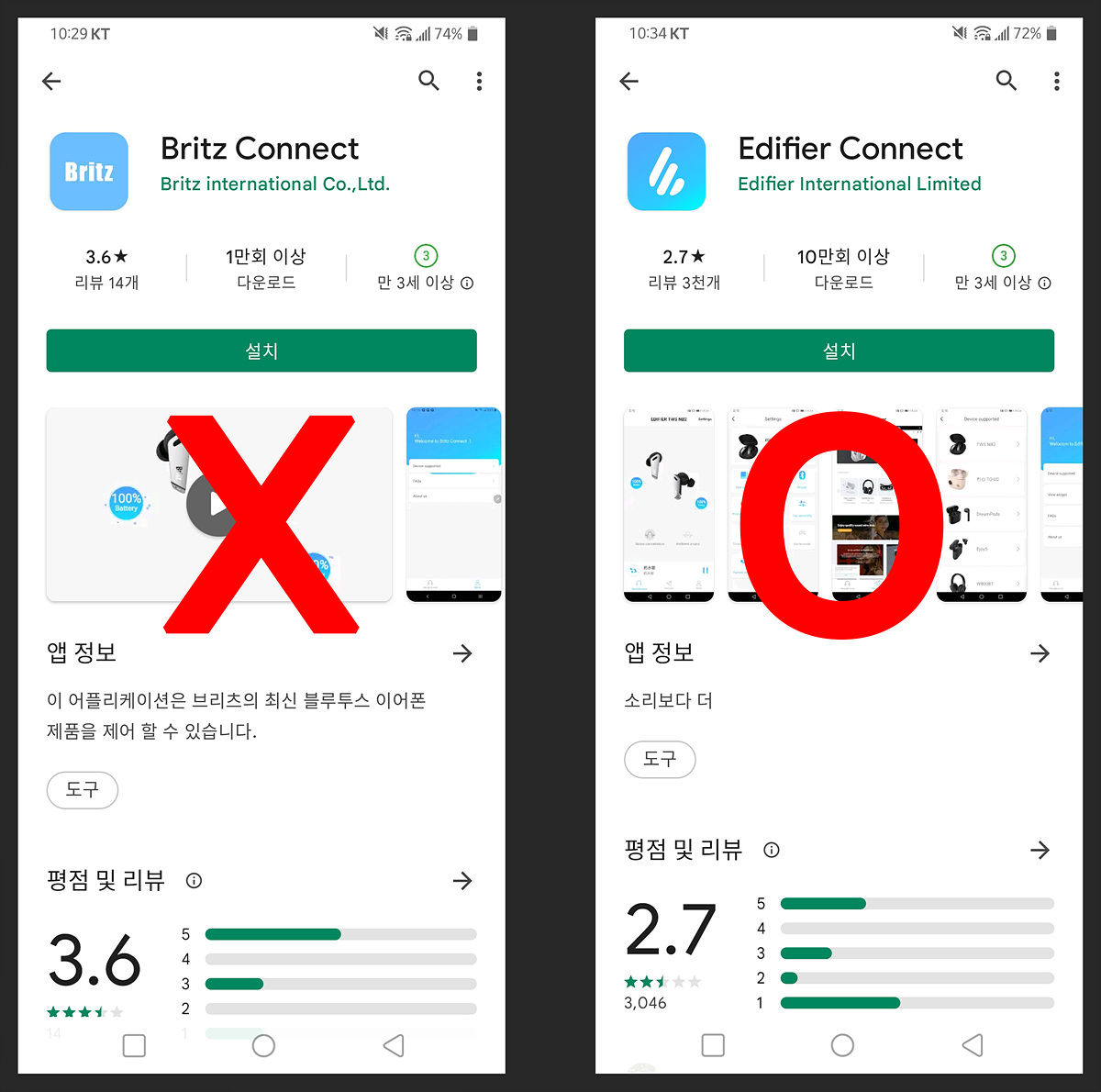 그동안 브리츠 제품을 사용하면서 전용 앱을 지원하지 않는다는 게 아쉬웠는데 GX07은 전용 앱을 지원하고 있습니다. 브리츠 제품에서 공통적으로 사용할 수 있는 게 아니라 GX07 전용이므로 Britz Connect가 아니라 Edifier Connect 앱을 설치해야 합니다.