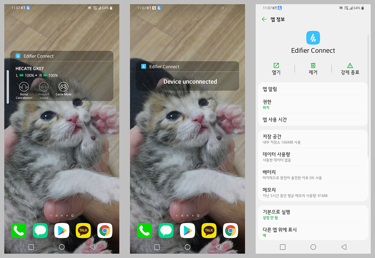 위젯을 통해 편리하게 모드를 변경할 수 있지만 앱을 종료한 후에도 앱이 종료되지 않고 계속해서 노티 바에 실행이 되더군요. 연결이 되지 않은 상태에서도 계속해서 상주해서 강제 종료를 해야만 했습니다. 전용 앱이 있는 건 좋지만 전체적으로 완성도는 많이 떨어지는 느낌을 받았습니다.