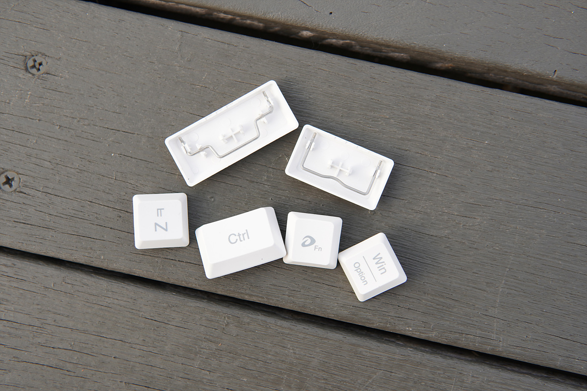 스위치의 구조상 스테빌라이저 역시 다른 스위치와 다른 모양으로 되어있습니다. 제품의 DB에도 키캡의 재질이 나와있지 않아서 ABS라고 생각을 했었는데 이게 좀 독특하더군요. PBT에서 느껴지는 까끌한 느낌과 ABS의 부드러움을 모두 느낄 수 있었습니다. 개인적인 생각이지만 따로 표기를 하지 않은걸 보면 ABS라고 생각됩니다.