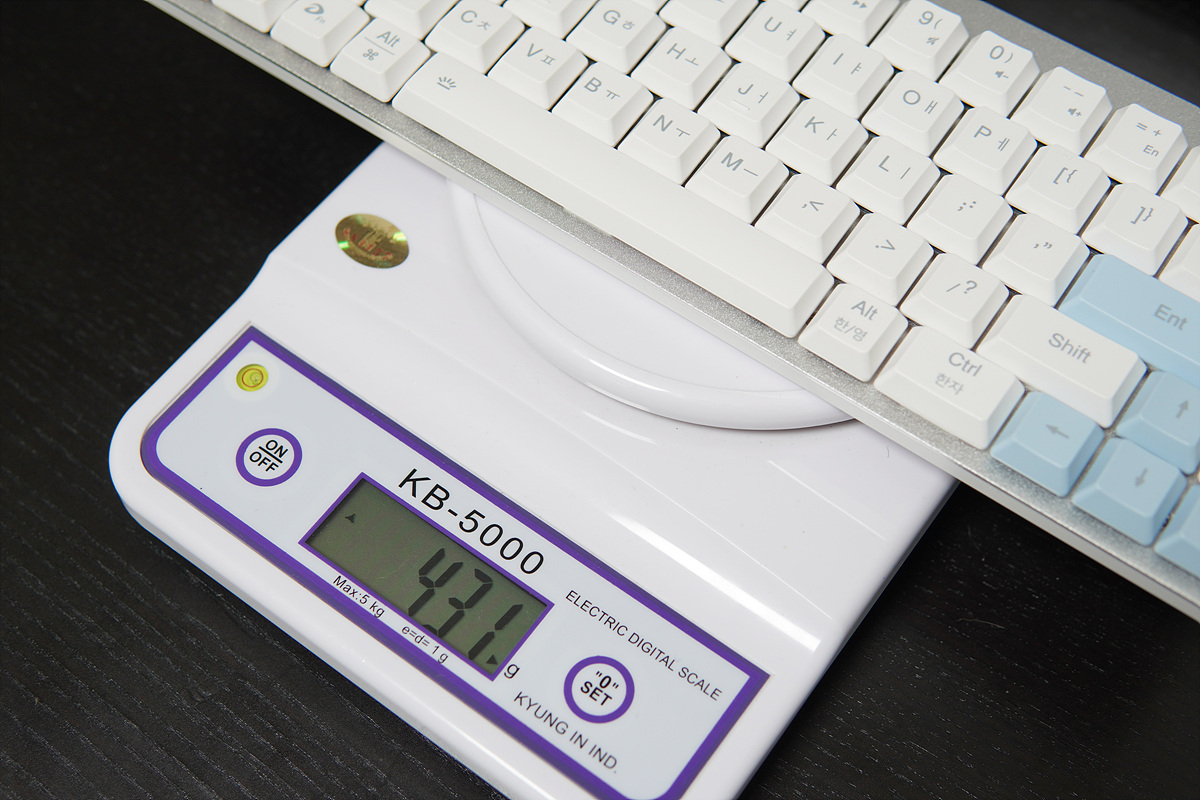 키보드의 무게는 431g으로 측정되었습니다. 노트북을 가지고 다니는 분들에게는 조금 부담스러울 수도 있겠지만 태블릿을 사용하는 분들이라면 괜찮을 거라 생각합니다.