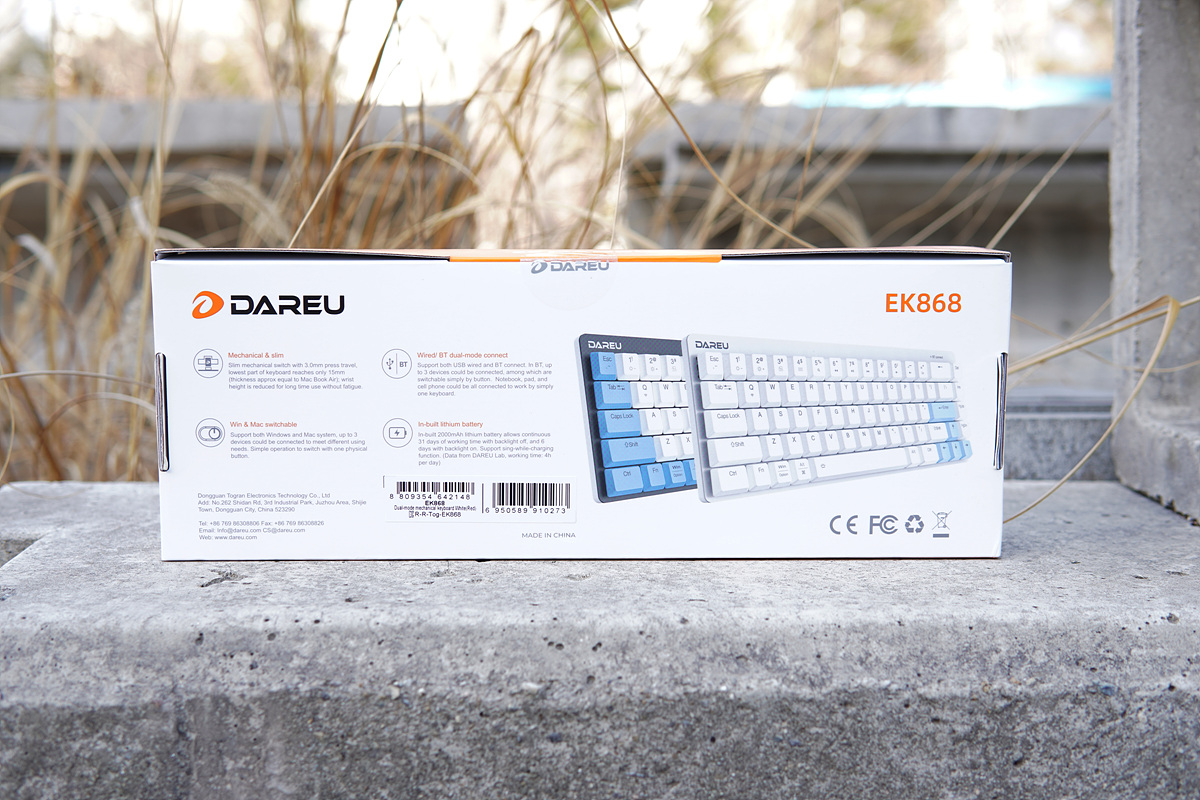 다얼유 EK868 키보드의 스펙을 간단히 정리해보았습니다. 68 Key 배열을 가지고 있으며 유선과 블루투스를 이용해서 최대 4대까지 연결이 가능합니다. (블루투스 3대 연결) 유선으로 연결할 때는 Windows / Mac에서 사용을 할 수 있으며 단축키가 아닌 물리 스위치로 기기나 모드를 바꿔서 사용할 수 있습니다.