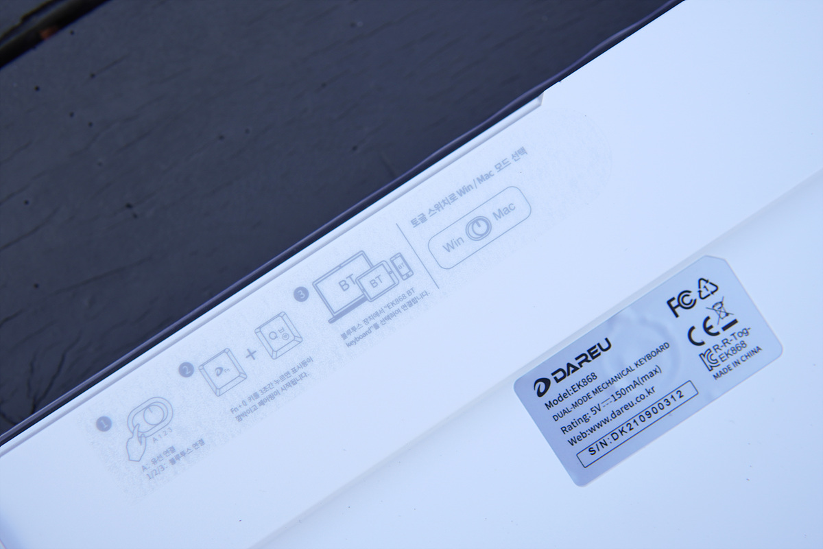 위쪽 스위치에 따라서 Mac에서 그대로 사용할 수 가능하며 Fn + Q 버튼을 3초간 누르면 페어링 모드로 진입할 수 있습니다.