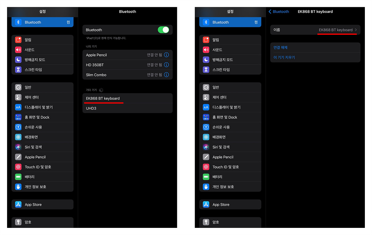 스마트 기기에 사용할 수 있는 무선 블루투스 키보드들은 보통 3대 이상의 멀티 페어링을 지원합니다. 하지만 EK868은 유선 모드로도 사용할 수 있으며 Win / Mac 모두 완벽하게 호환이 가능한 특징과 장점을 가지고 있습니다. 추가로 기기에 연결을 바꿀 때 키보드 입력이 아닌 별도의 스위치로 하는 것 역시 상당히 칭찬해주고 싶습니다. 키보드의 단축키 아닌 물리 스위치로 바꾸는 게 훨씬 더 직관적이고 편리하게 사용할 수 있습니다. 키보드의 단축키로 하는 게 나쁘다는 게 아니라 이렇게 별도의 스위치를 하는 게 더 효과적이라는 뜻이나 오해 없으시길 바랍니다. ^^